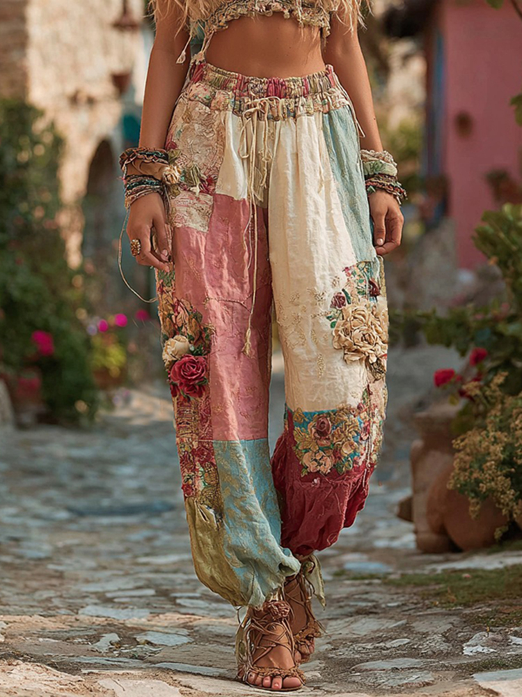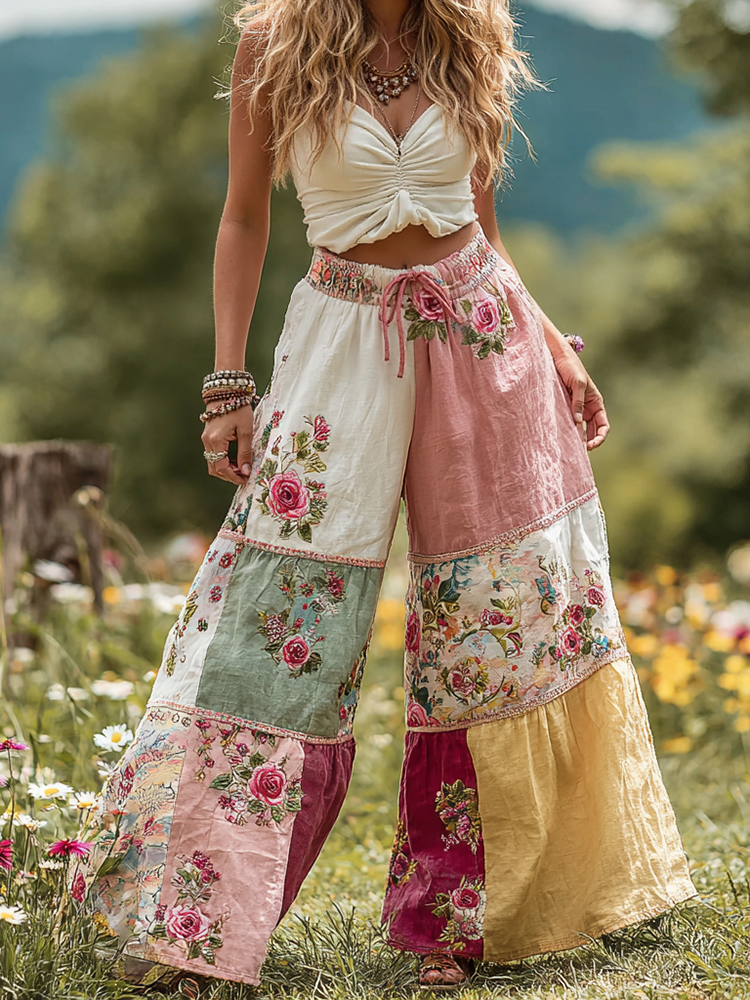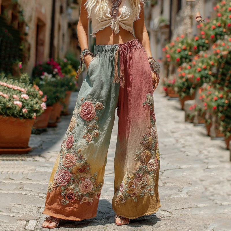 The Ice Cream Collection Women's Classic Bohemian Floral And Rose Gradient Art Linen Pants