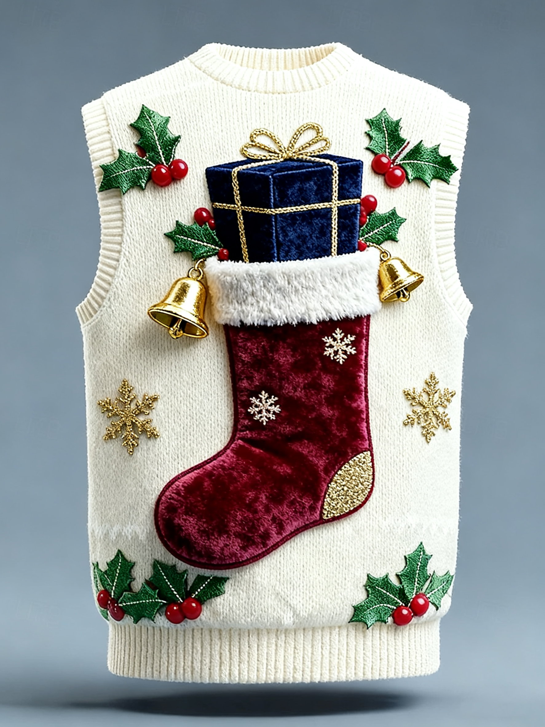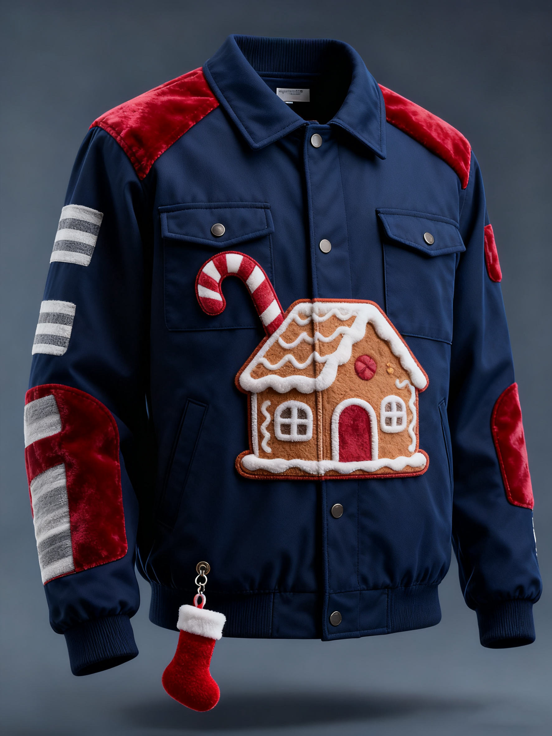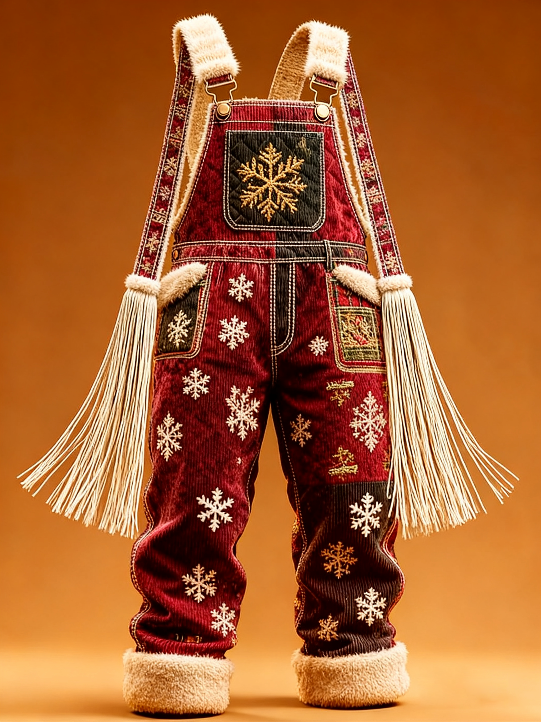 Men'S Christmas Themed Embroidered Checkered Patchwork Christmas Party Warm Work Pants