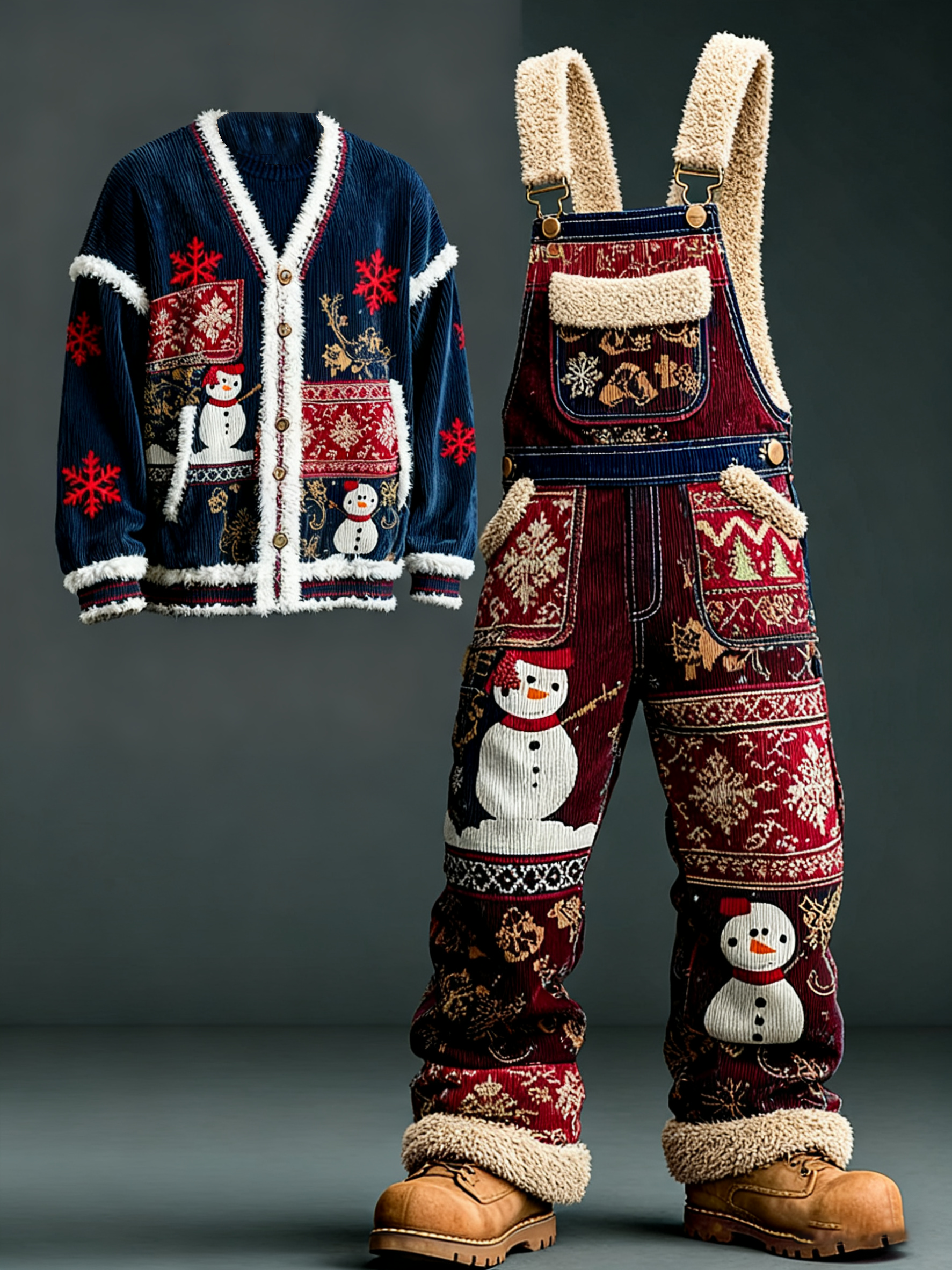 Men'S Christmas Themed Fun Animals Funny Down Jacket Sports Pants, Warm Two-Piece Set
