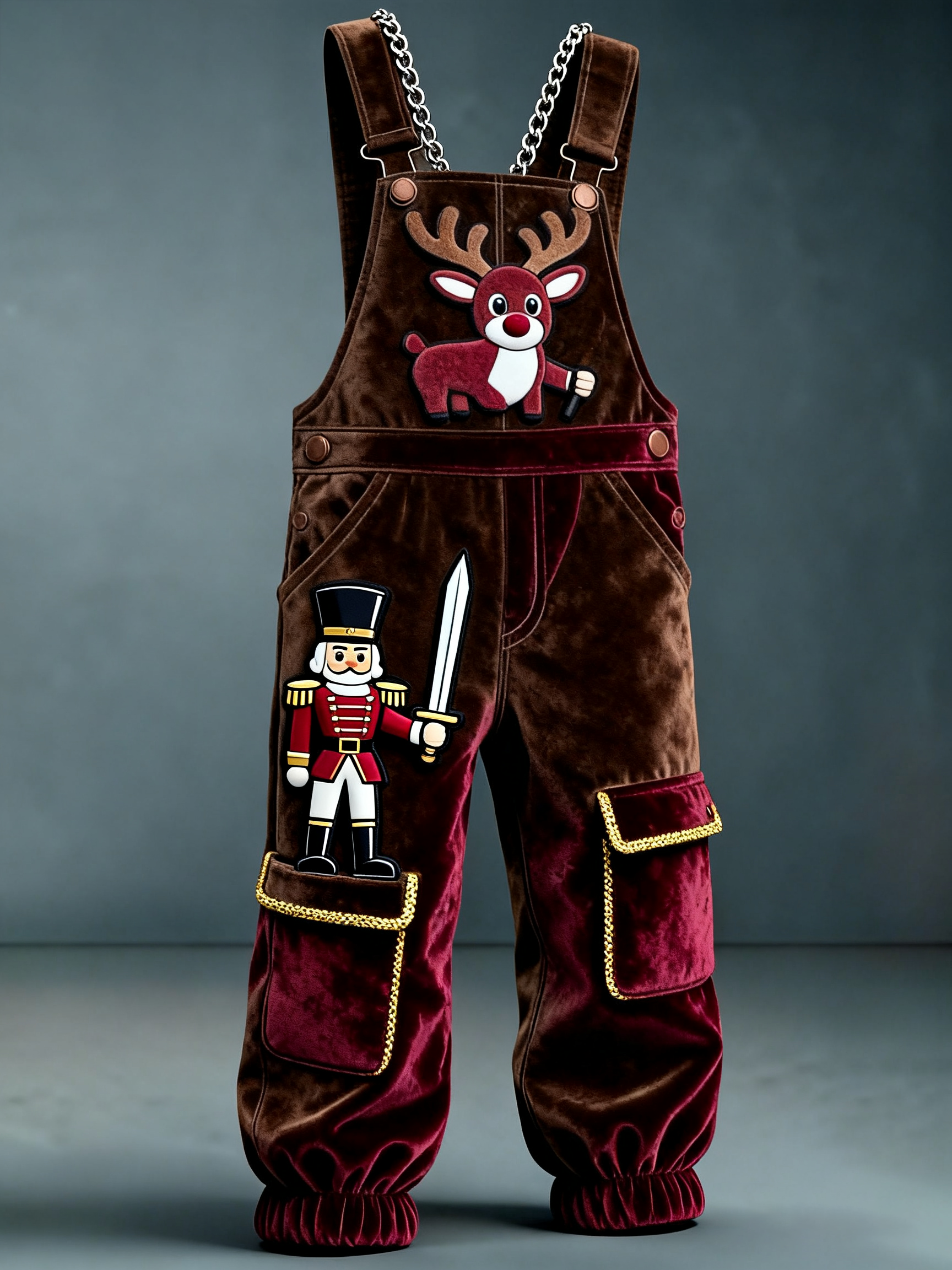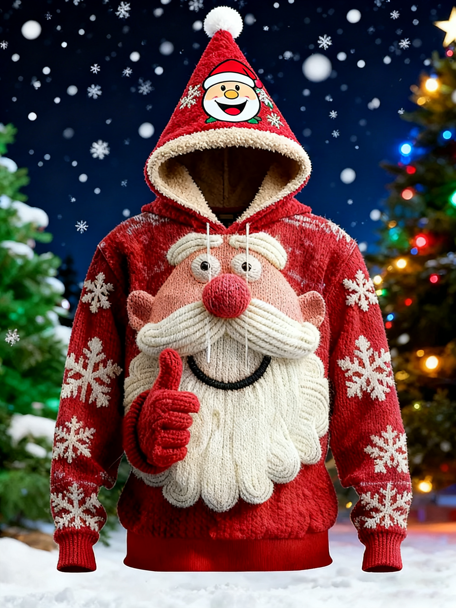Men'S Workwear Style Green Hooded Jacket Santa Claus Patch Snowflake Denim Patch