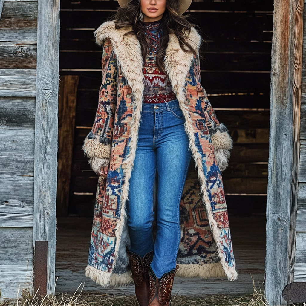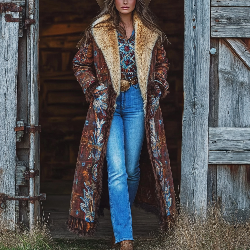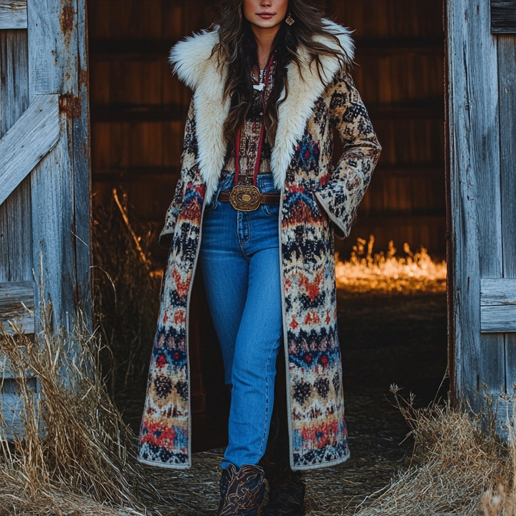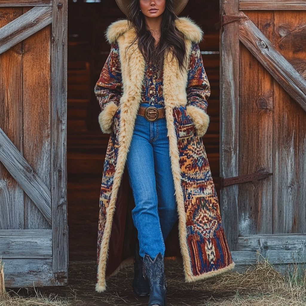 Western Retro Style Women's Aztec Print Coat Plush Autumn And Winter Warm Coat