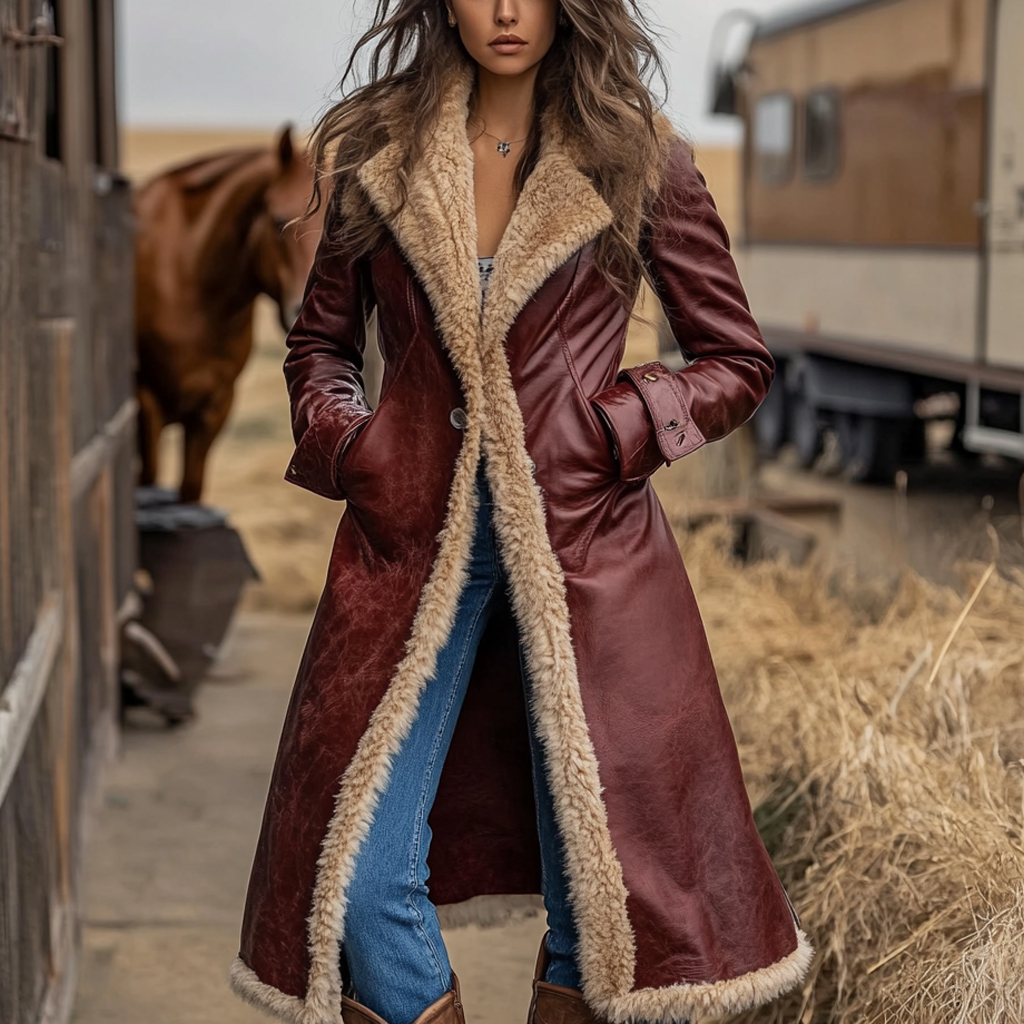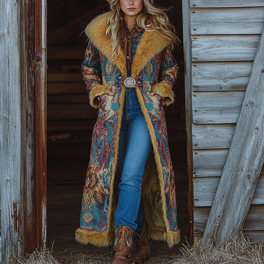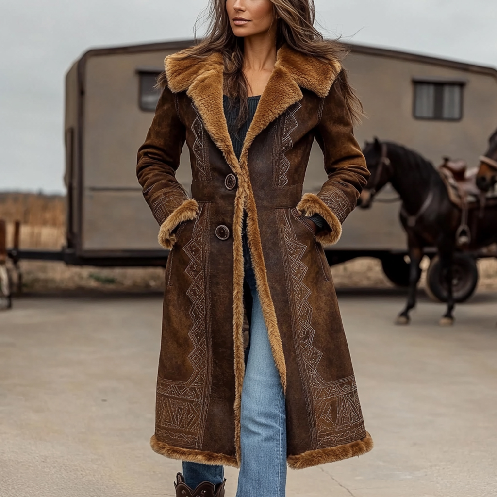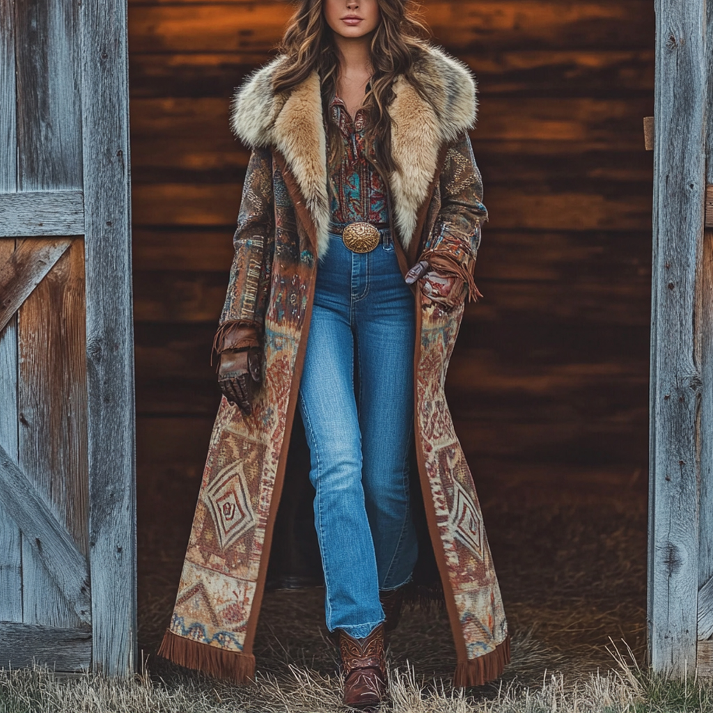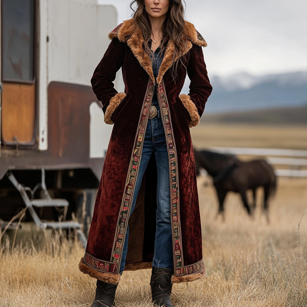 Western Retro Style Women's Aztec Print Coat Plush Autumn And Winter Warm Coat