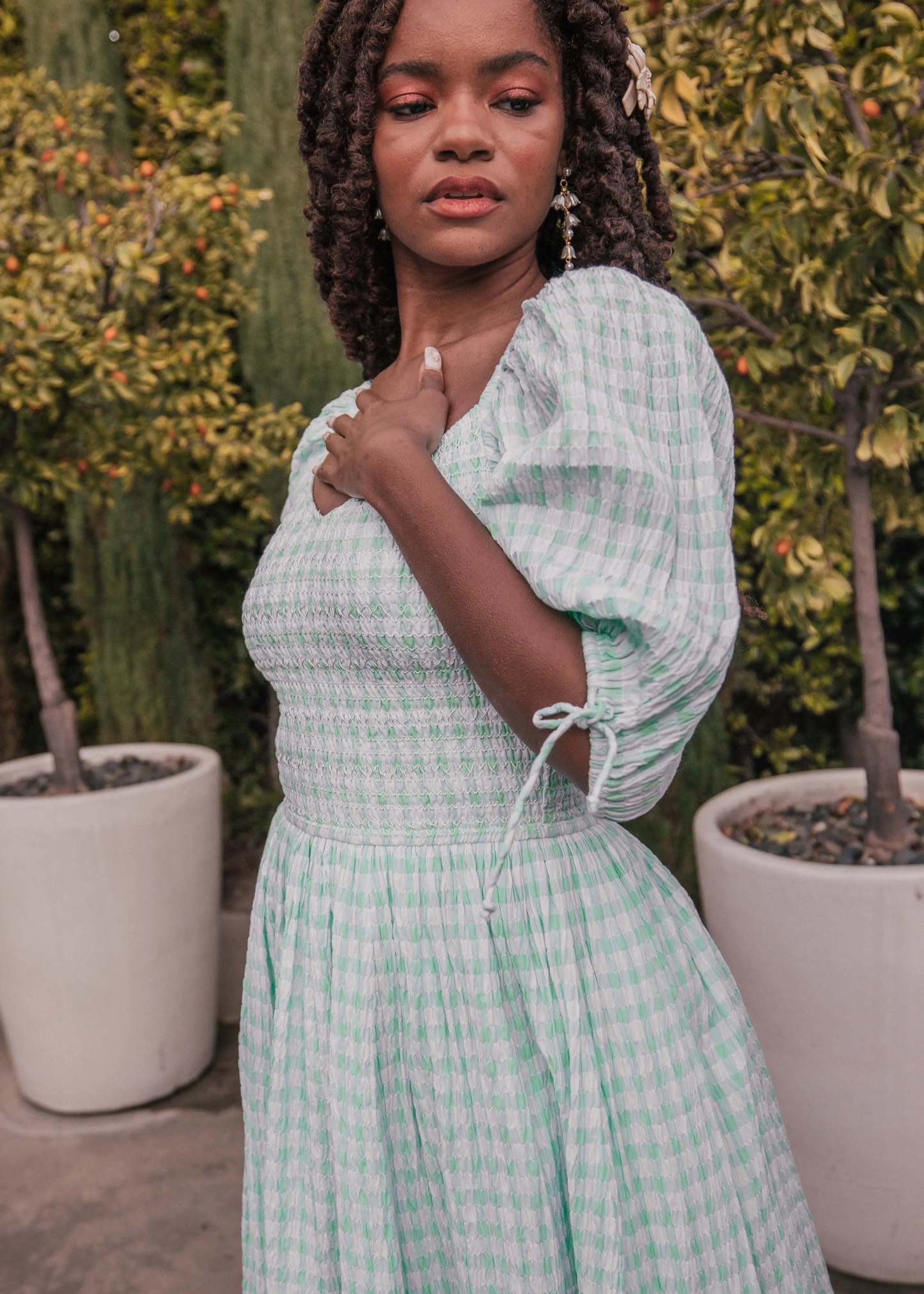 - Smocked bodice