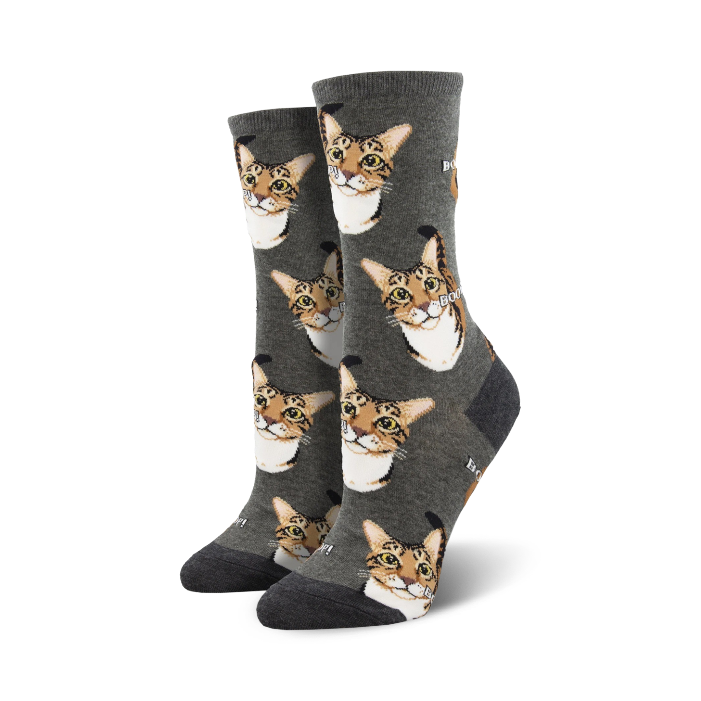 Boop those blues away with our fun gray crew socks! These adorable socks feature a pattern of playful cartoon cat faces with their tongues out, and the word "boop" in small white letters. Whether you're a crazy cat lady or just love a good pun, these socks are sure to put a smile on your face. Plus, they're purr-fect for showing off your feline fanaticism. Meow!