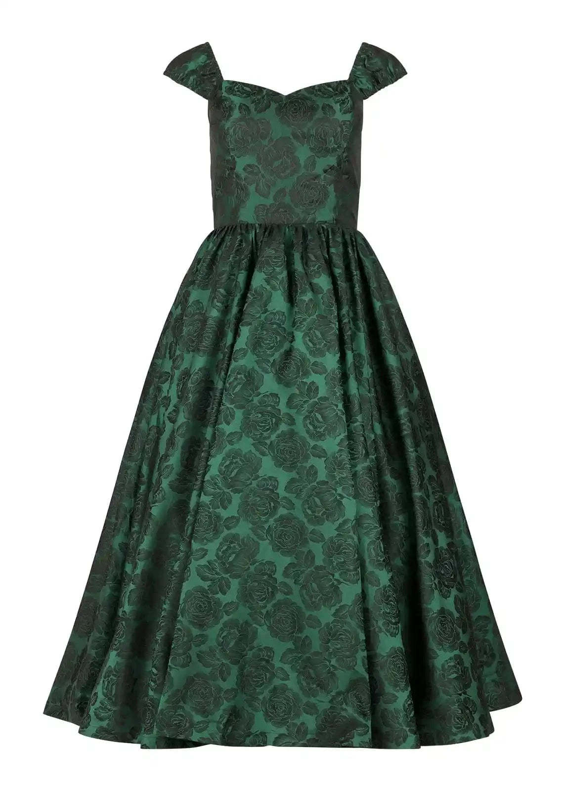 Step into timeless elegance with the Campbell Dress, a stunning green floral gown designed for unforgettable moments. Featuring a romantic sweetheart neckline, delicate off-the-shoulder sleeves, and a full A-line skirt, this dress brings vintage-inspired charm with modern sophistication. Perfect for holiday parties, weddings, and special occasions, the Campbell Dress is a show-stopping piece that flatters every silhouette. Pair it with your favorite heels and jewelry for a truly enchanting look. Celebrate the season in another festive green look with our?.