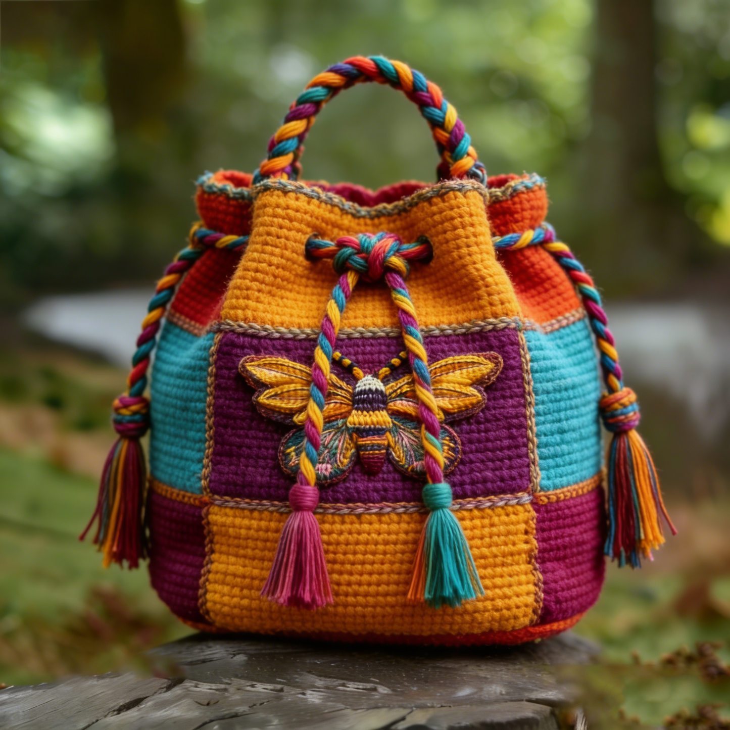 Colorful Butterfly Pattern Weaving Mini Handheld Bucket Bag