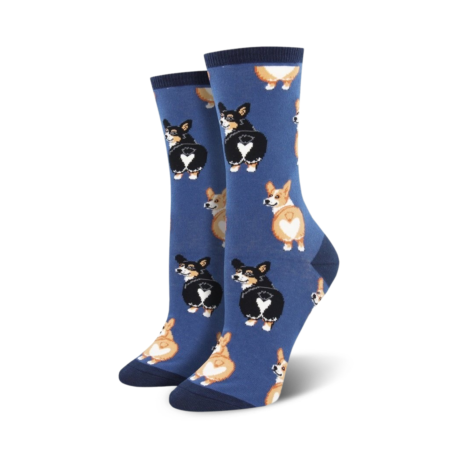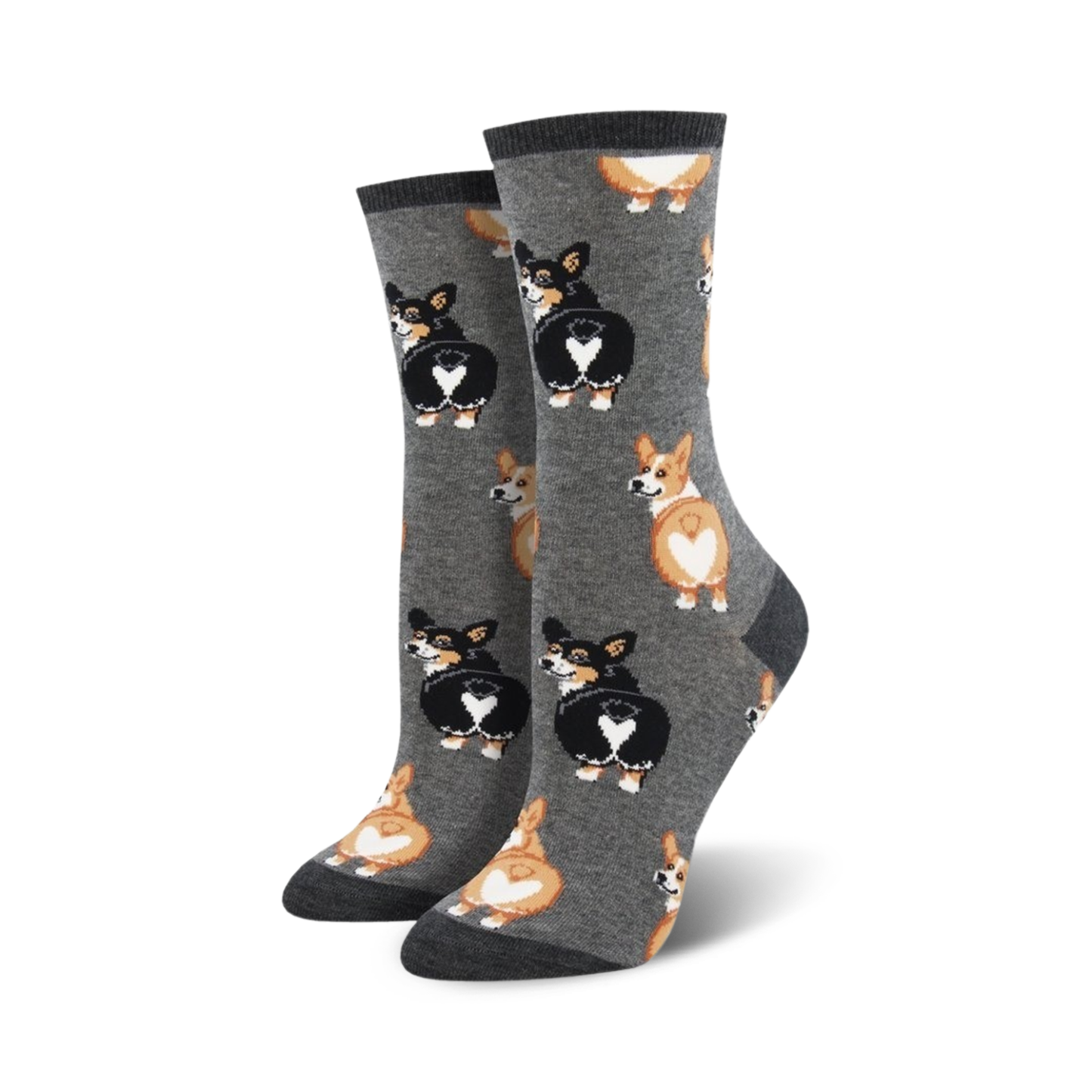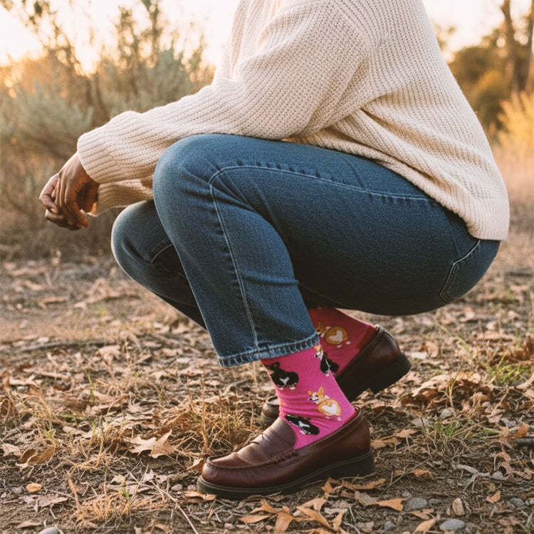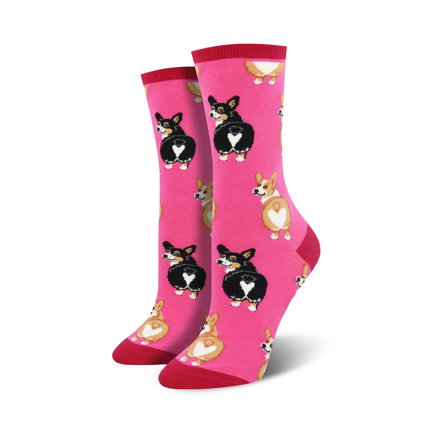 Do you love Corgis for their outgoing and playful personalities? Do you love Corgi butts even more? If so, you will love these adorable socks! What's not to love about their sweet, soft little tushies? Each cool pair of women's novelty crew socks features Corgis showing off their heart-shaped butts on a pink background. These unique feet warmers would make a great gift for the Corgi lover in your life!