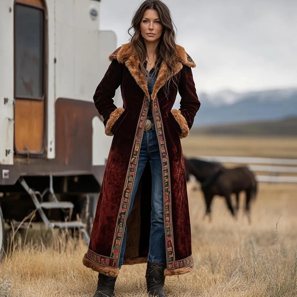 Denim Women's Western Retro Coat Plush Autumn And Winter Warm Coat