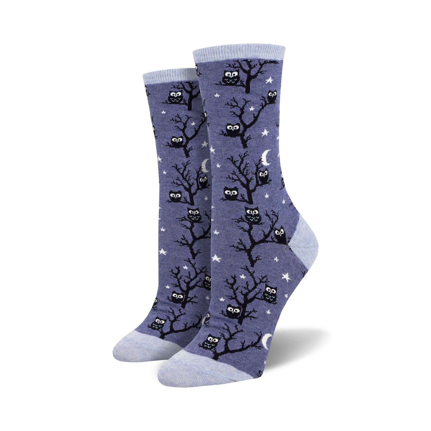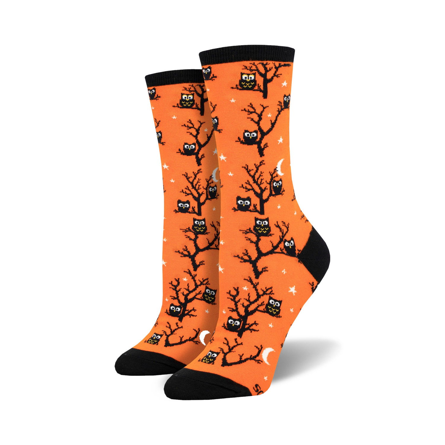 Calling all owl-loving night owls! Don't give a hoot about boring socks? Then these orange crew socks with black trees, crescent moons, and starry night sky background will be a hoot for your feet! Strut your stuff in these hoot-tastic socks and let the world know you're a wise owl who doesn't give a hoot about anything other than spreading happiness one sock at a time. Hoot, hoot!
