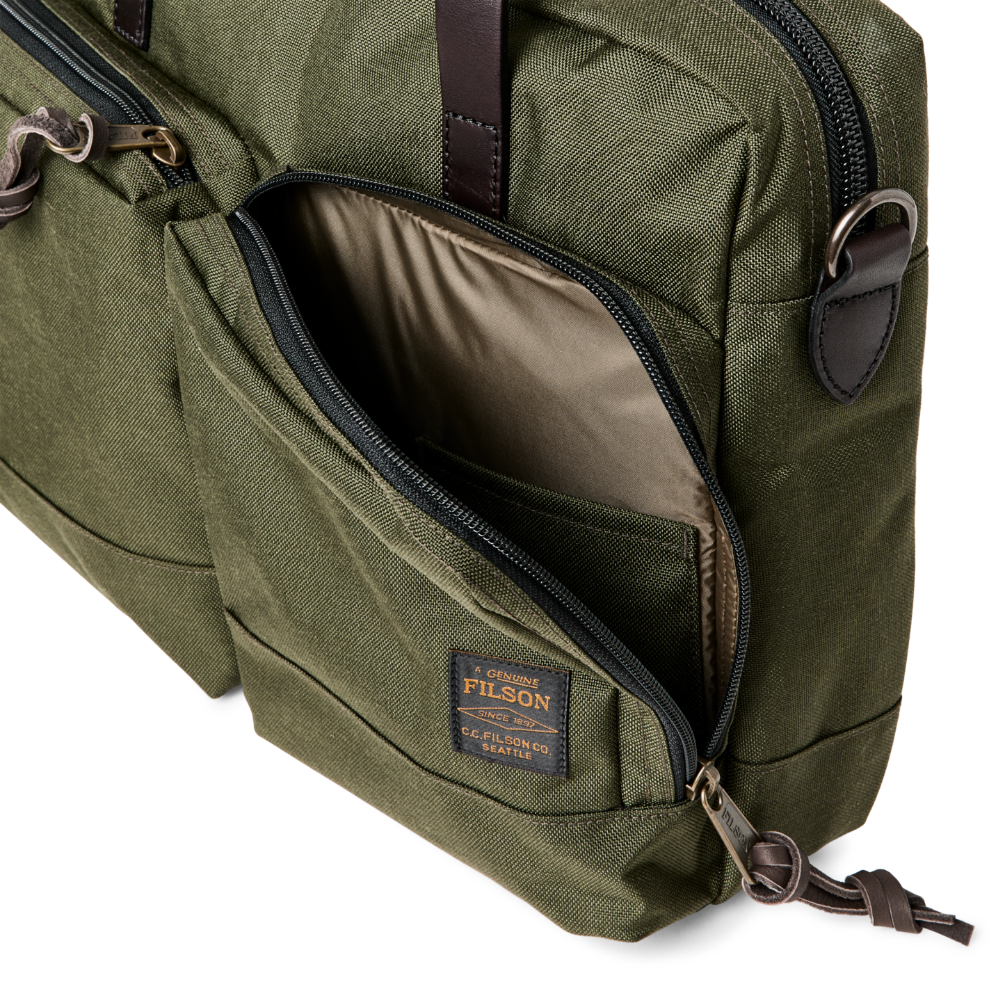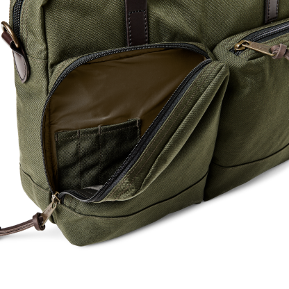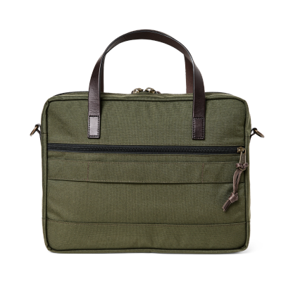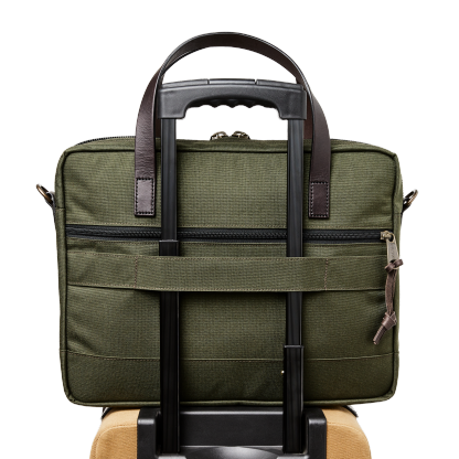 The versatile Dryden Briefcase is made of abrasion-resistant 1000D nylon that shrugs off the abuse of daily carry. This fabric is legendary for its ability to withstand abrasion and, sharing the same weave as ballistic nylon, its resistance to punctures and tears is exceptional. A padded sleeve fits laptops up to 16". The trolley strap on the back enables securing the bag over luggage handles. Features large exterior pockets for organizing quick-access essentials. Removable, adjustable shoulder strap.