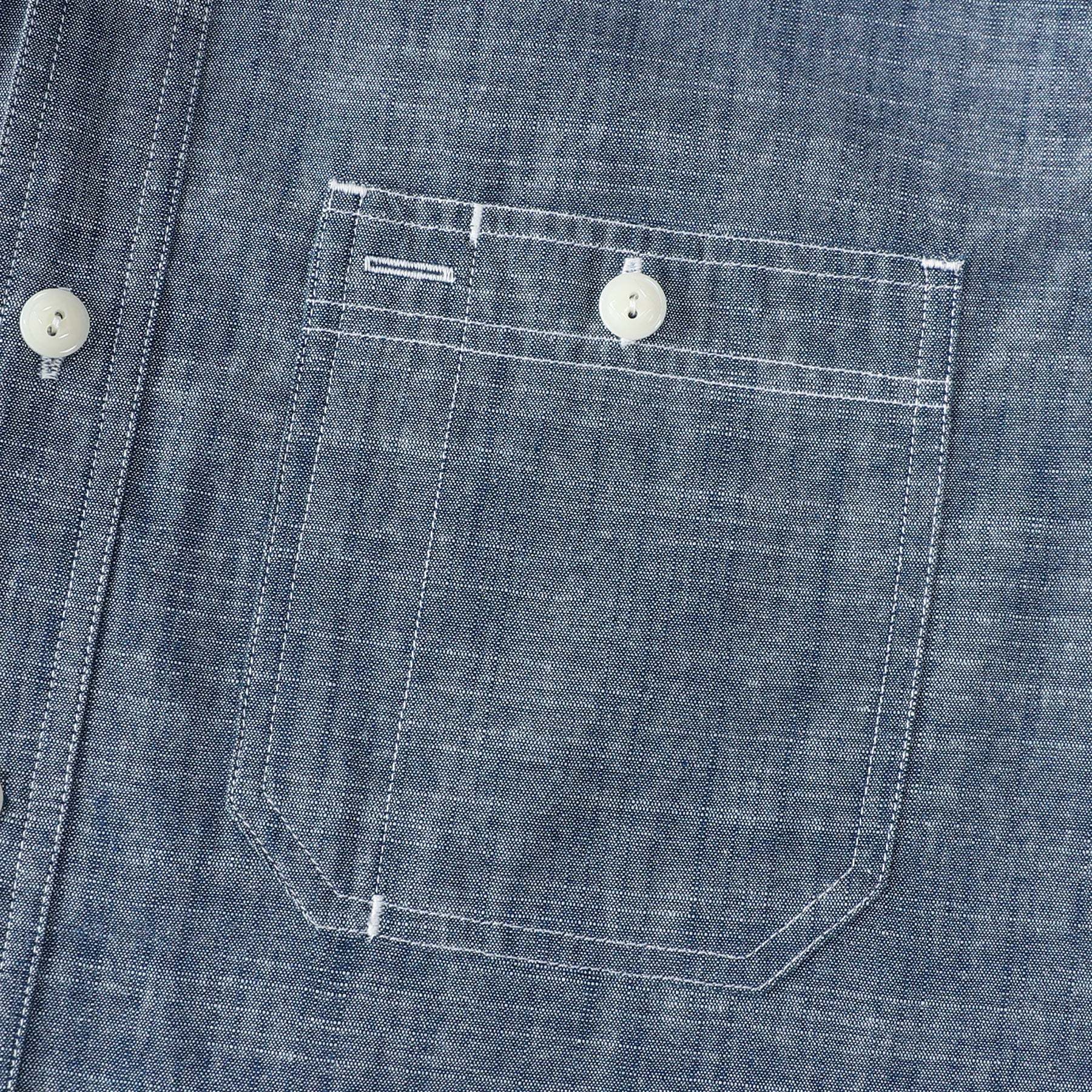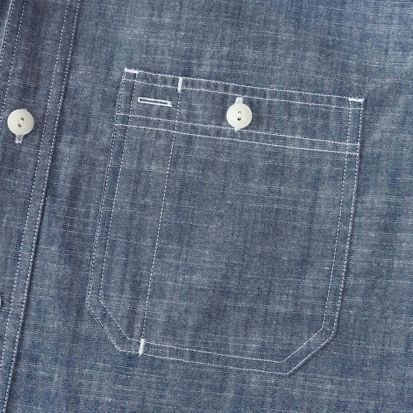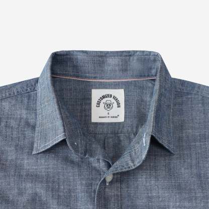 Crafted from chambray cotton, a strong warp-face fabric originally designed for workwear. Often seen as a relative of denim, chambray stands apart due to its plain-weave structure, unlike denim's twill weave.