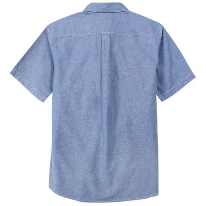 Upgrade your wardrobe with this classic short-sleeve chambray work shirt, designed for both style and durability. Made from high-quality, breathable chambray fabric, this shirt offers a soft yet sturdy texture that keeps you comfortable throughout the day. The lightweight cotton blend ensures excellent ventilation, making it ideal for warm weather and active work environments.