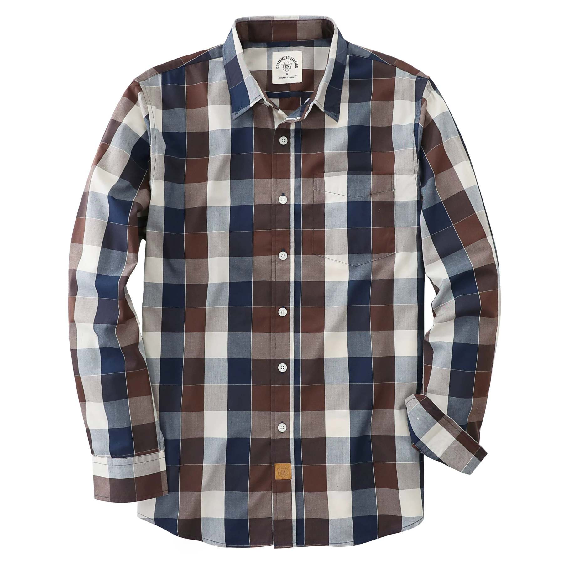 Dubinik庐Mens Long Sleeve Casual Button Down Vintage Plaid Shirts#52010