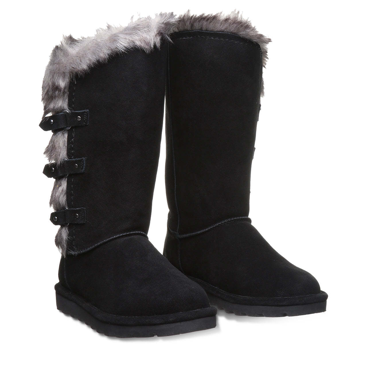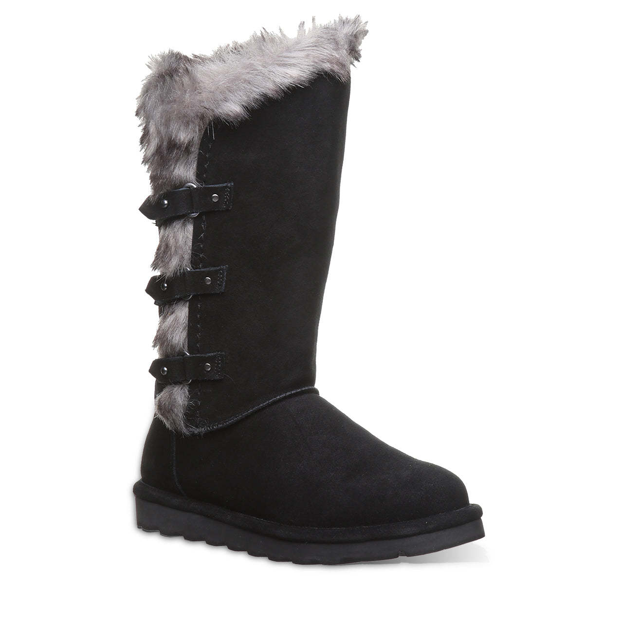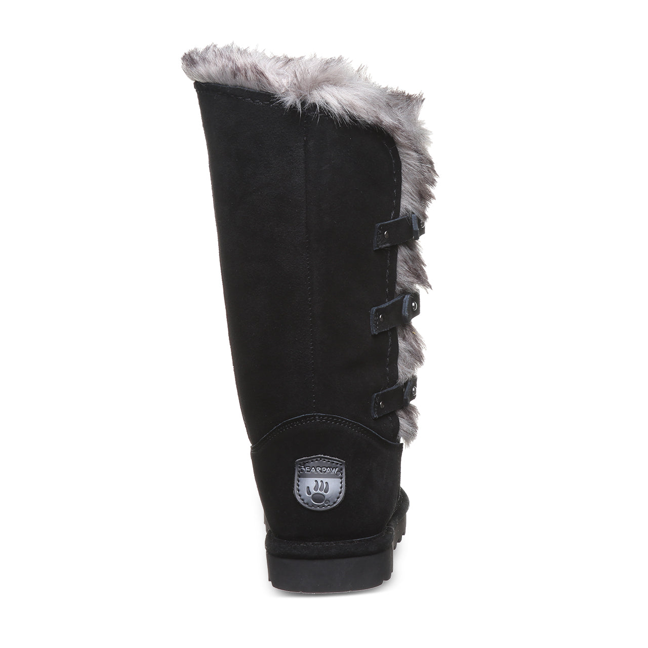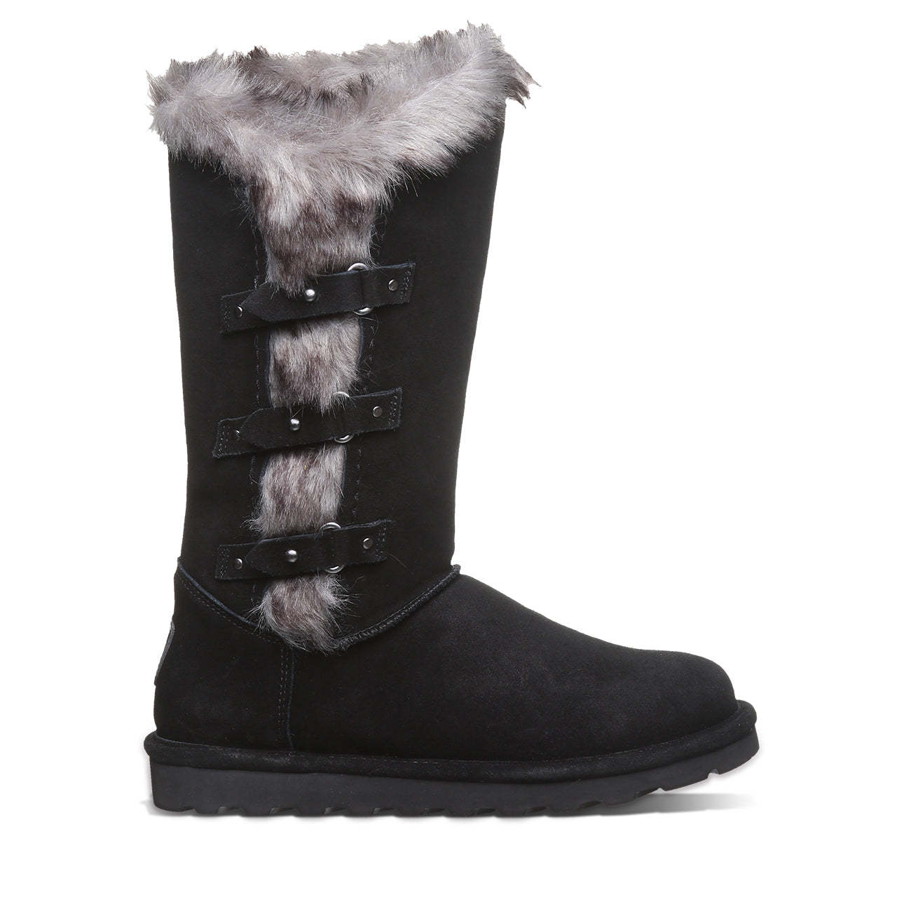 Make a statement with this cozy, free-spirited 11 inch tall boot. Adorned with three decorative strap detail and faux fur collar accent. Treated with BearCoat Rain & Stain Repellent for extra protection from the elements.