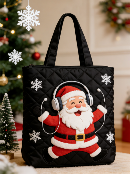 Enjoying Santa Claus Knitted Canvas Single Shoulder Large Capacity Handbag