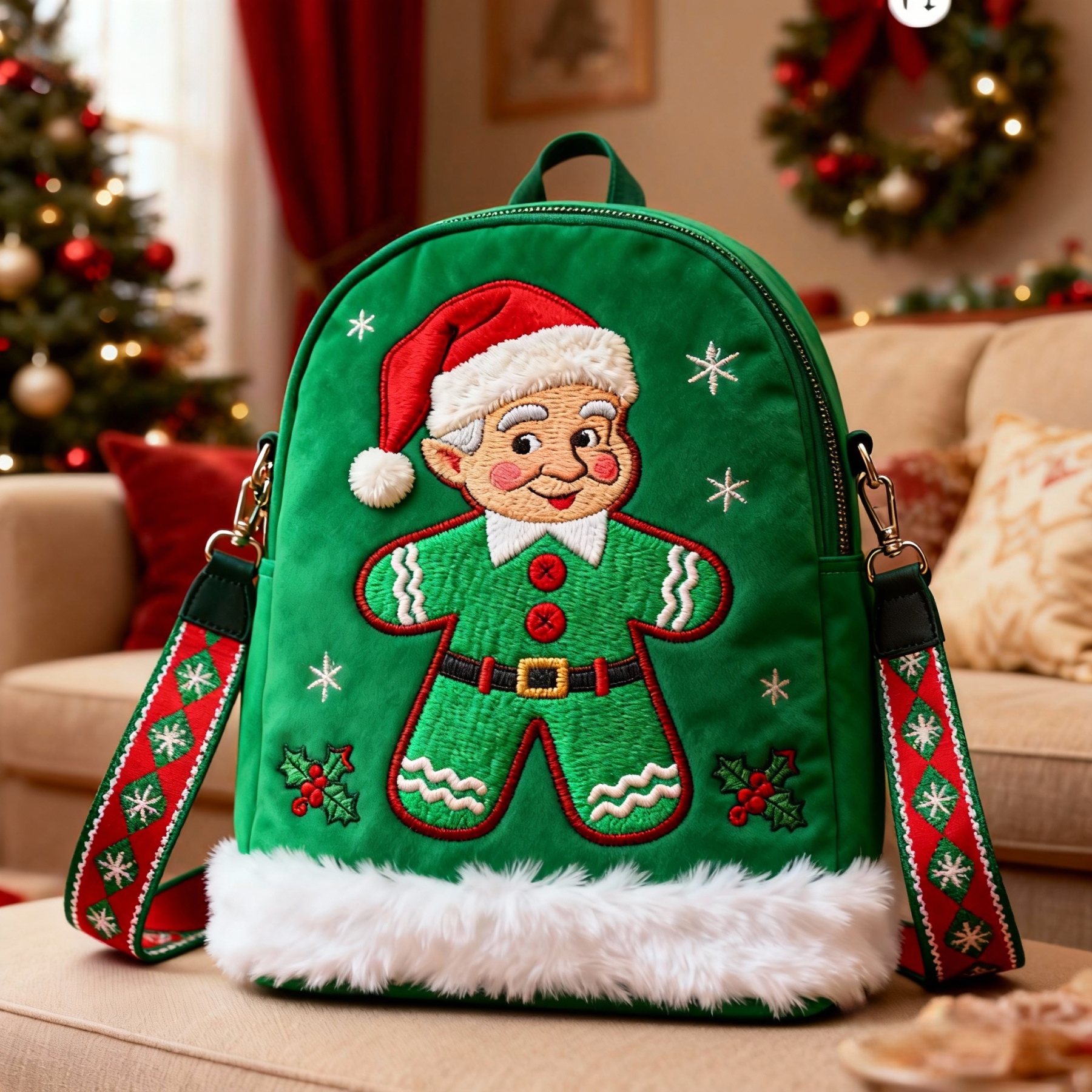 Holiday Winter Santa Claus Plush Color Contrast Atmosphere Multi Functional Leisure Fashion Backpack
