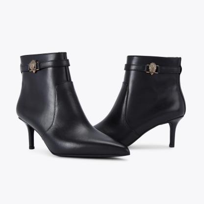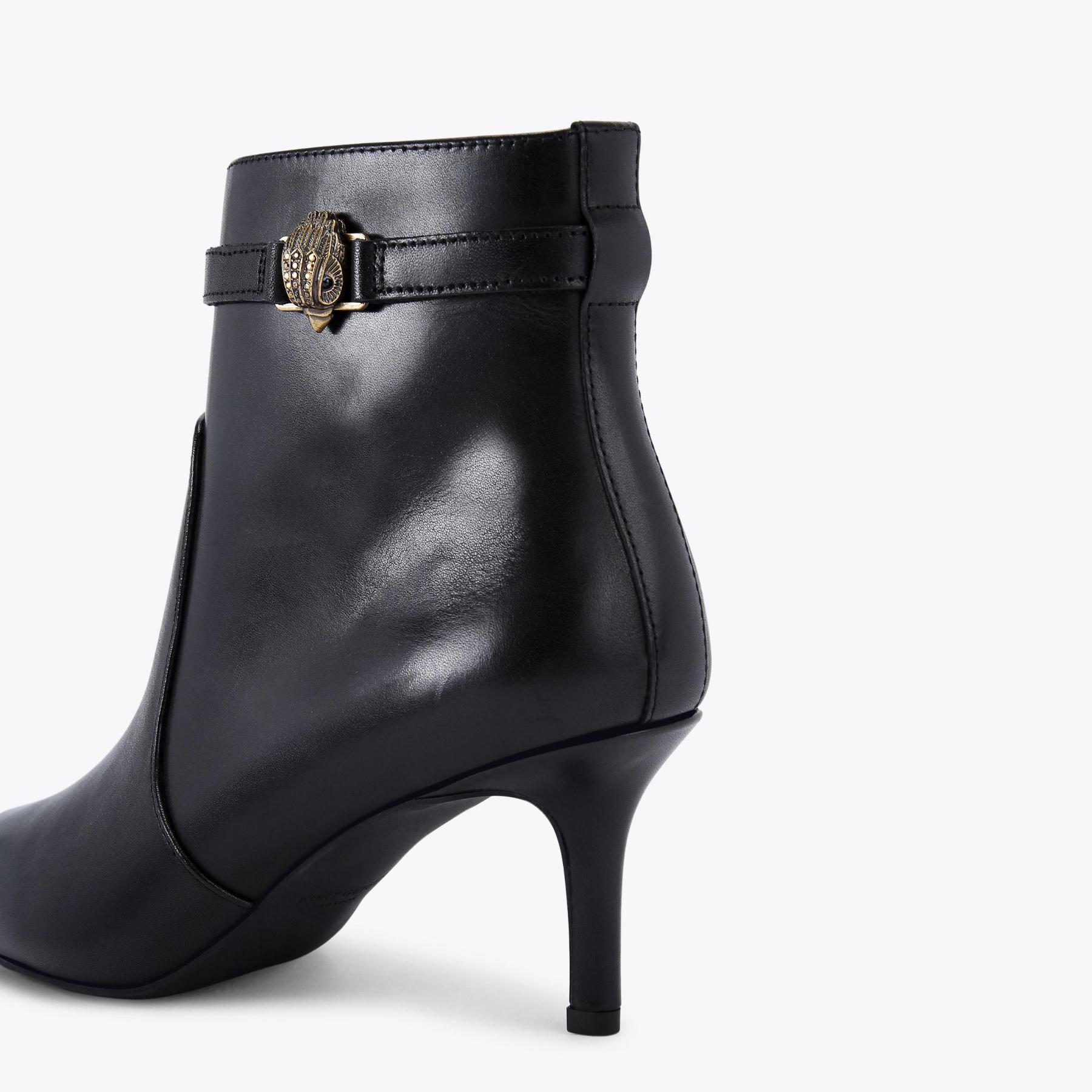 This Kensington Flexi Ankle boot features a denim bleached weave upper with pointed toe. There is an antiqued brass eagle head on the slim ankle strap. The sole has added flexibility for a unique comfort.