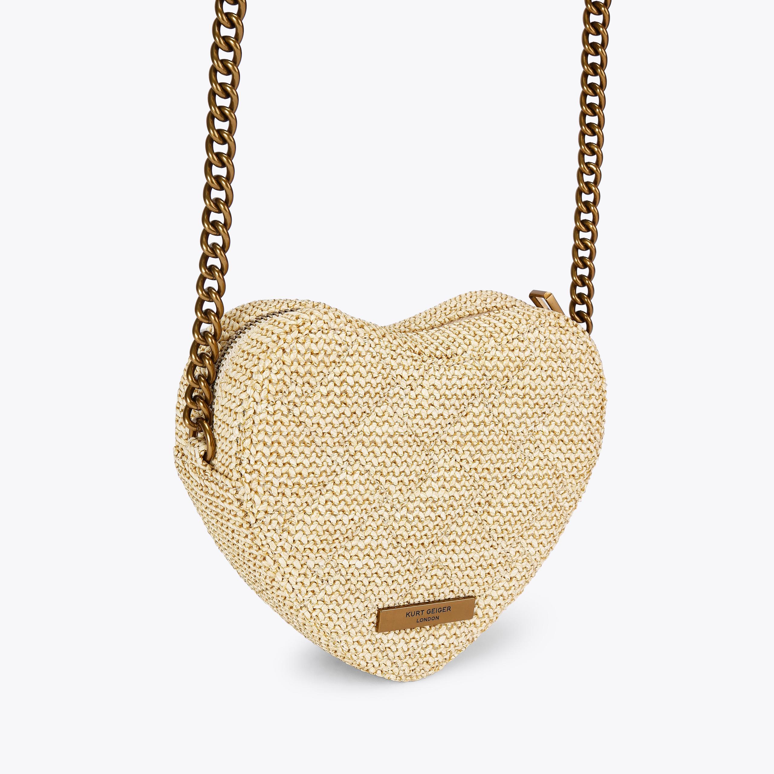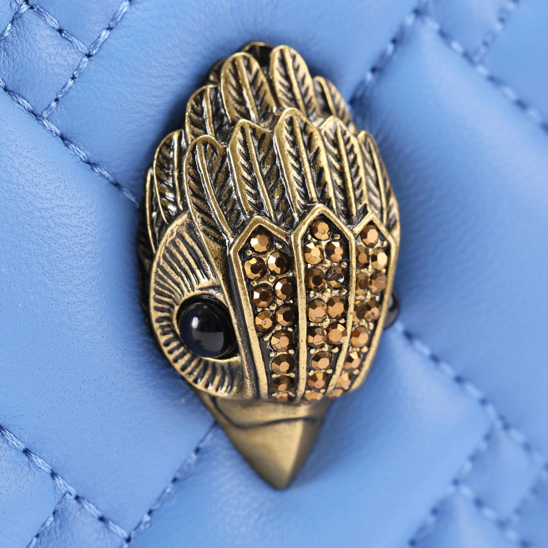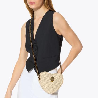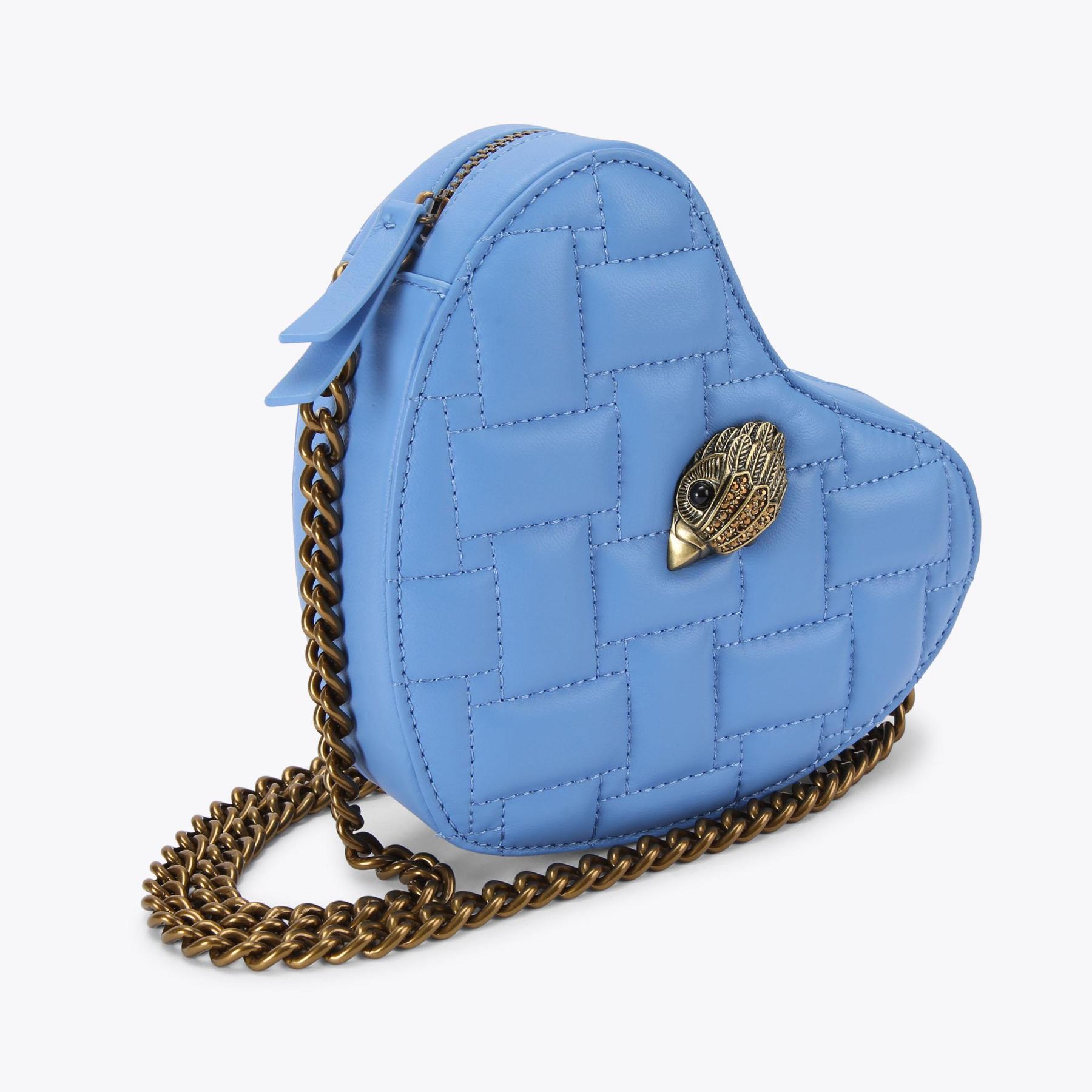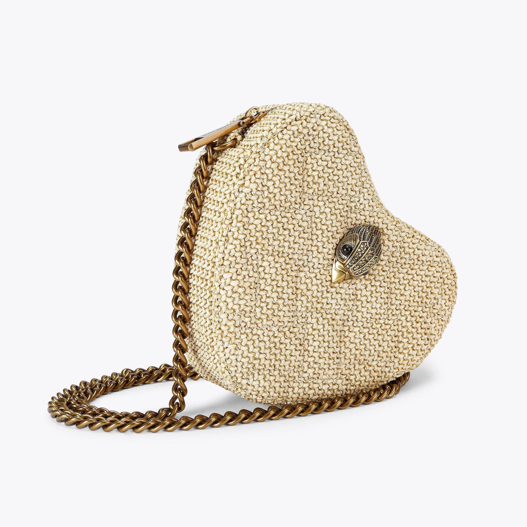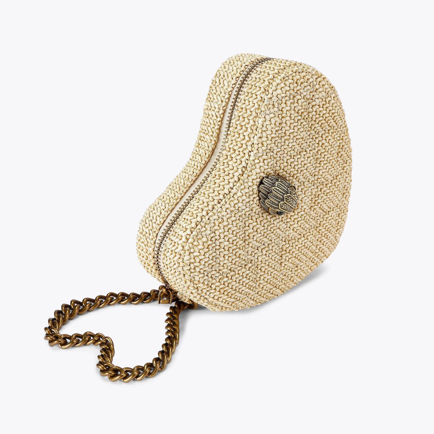 The Kensington Heart Purse is crafted from a metallic gold leather. The gold eagle head features all over feather detail on the front flap.