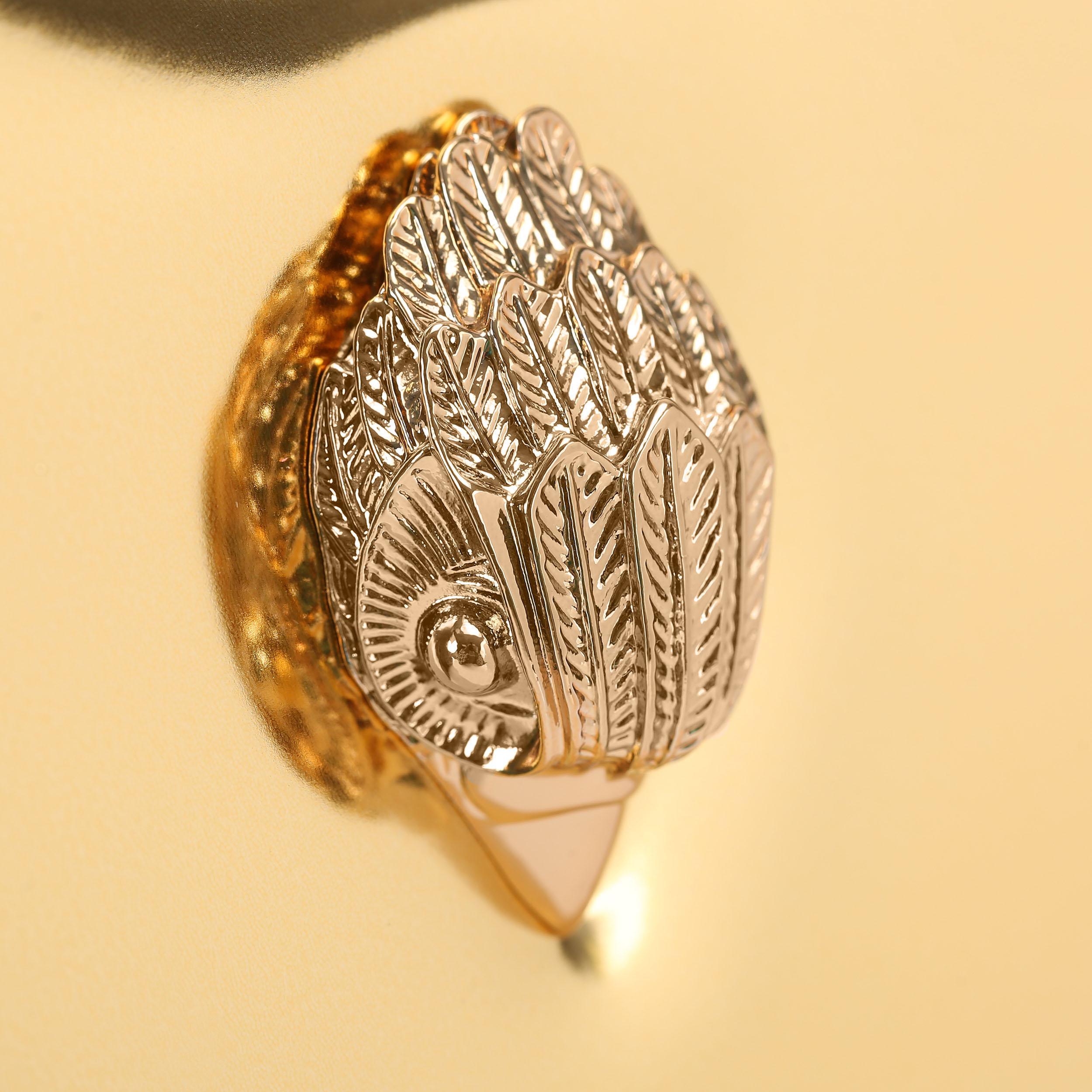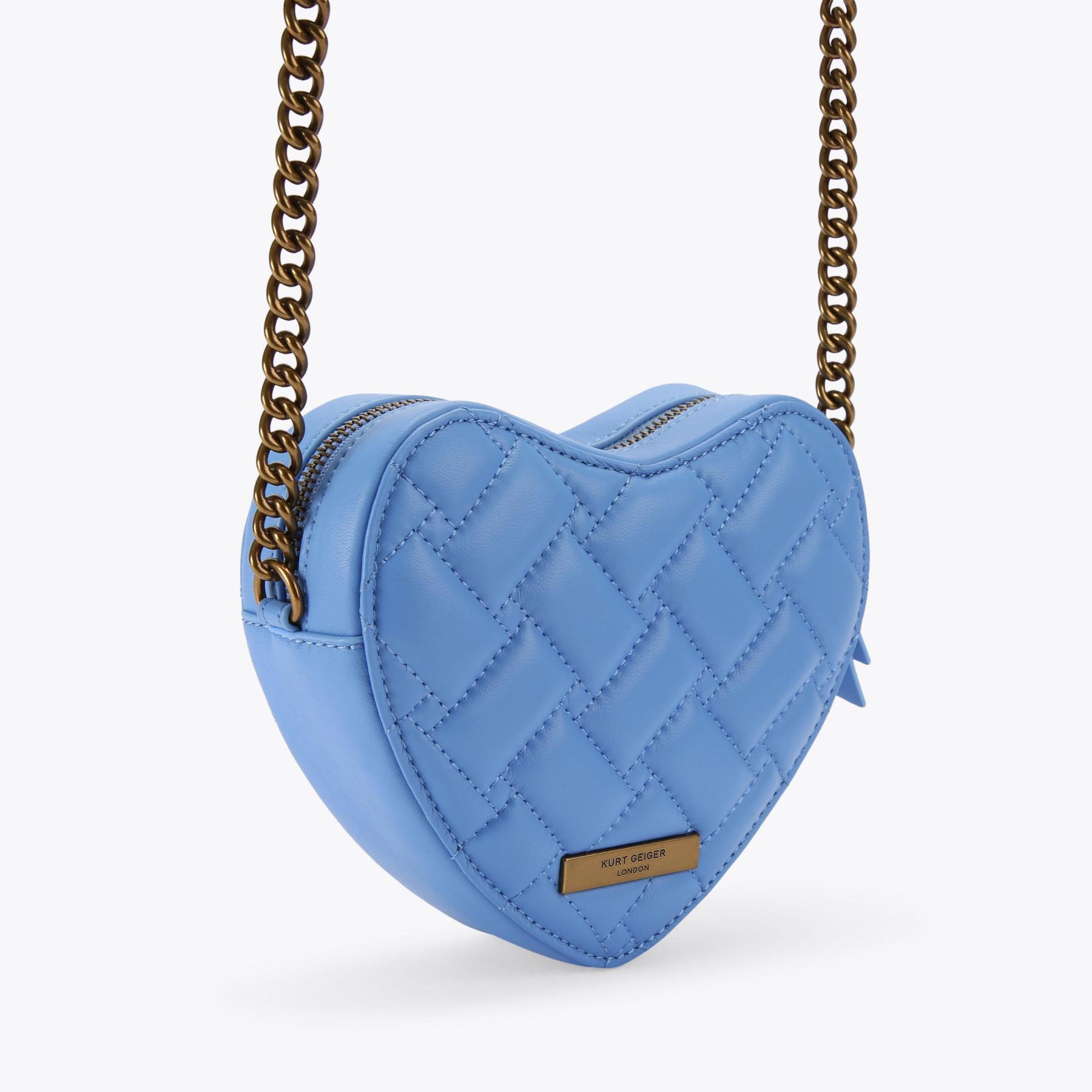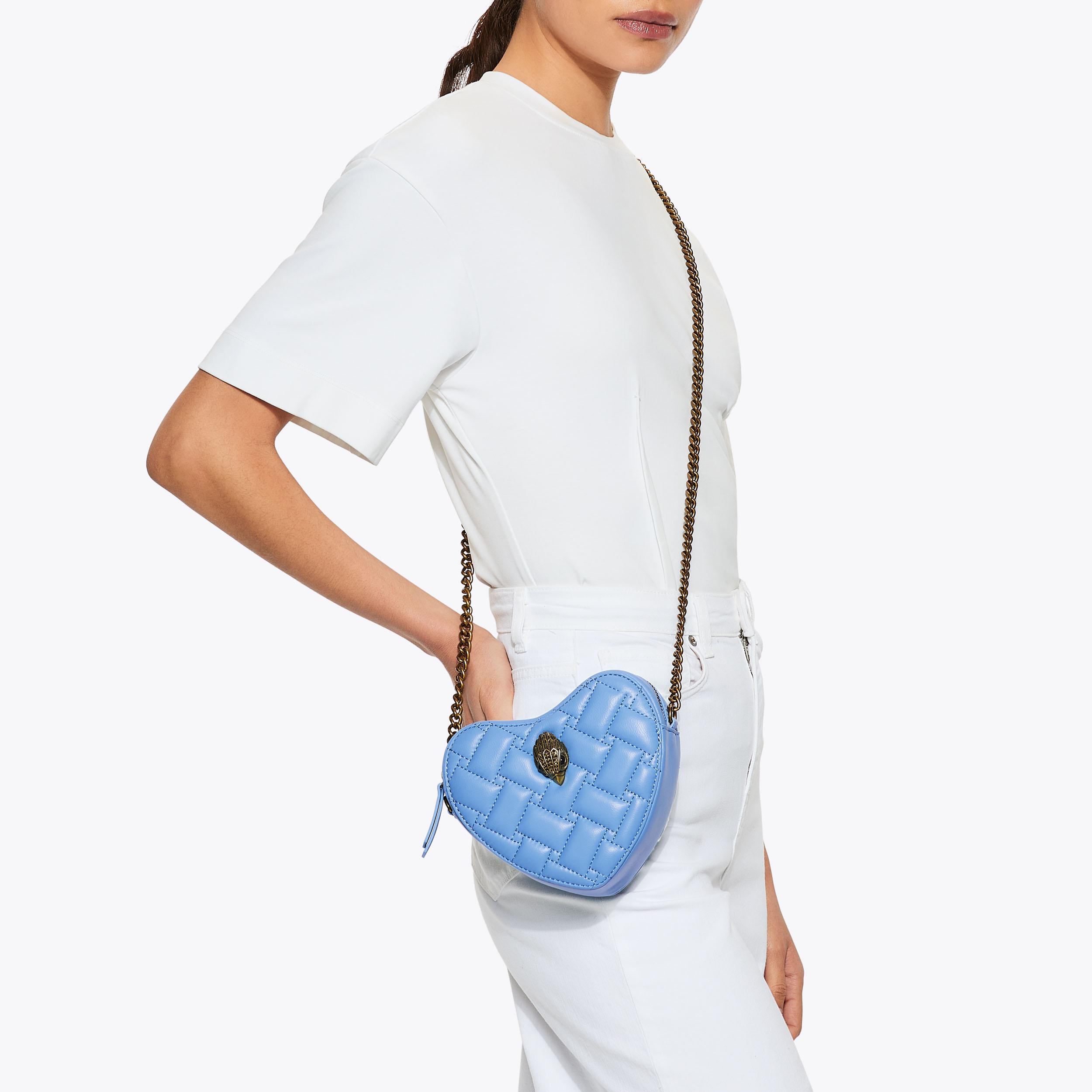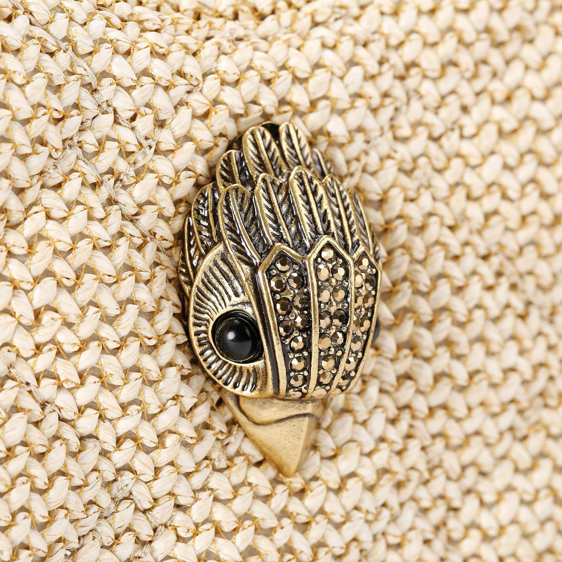 The Kensington Heart Purse is crafted from a metallic gold leather. The gold eagle head features all over feather detail on the front flap.