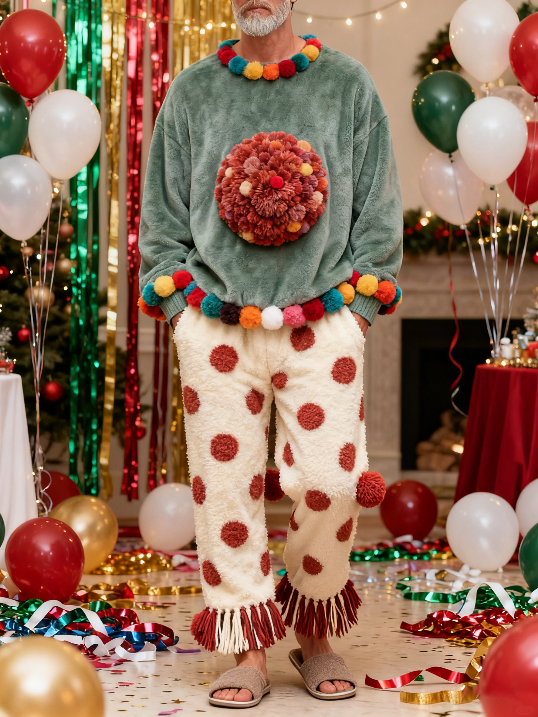 Men'S Autumn And Winter Creative Wool Ball Tassel Top, Long Pants, Pajamas Two-Piece Set