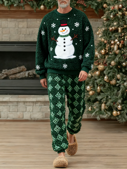 Men'S Autumn And Winter Snowman Plaid Comfortable Underwear And Home Clothes