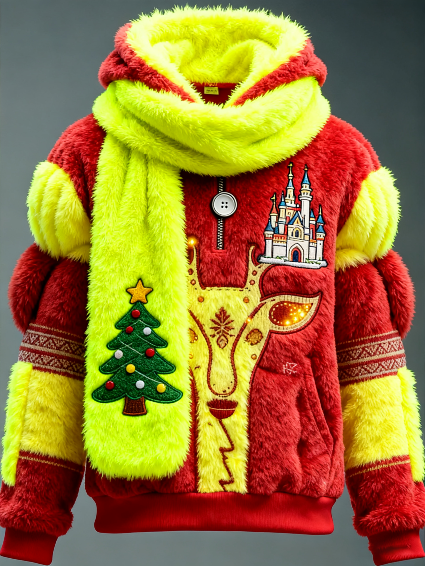 Men'S Autumn/Winter Christmas Themed Patch Embroidered Half Zip Hooded Sweatshirt