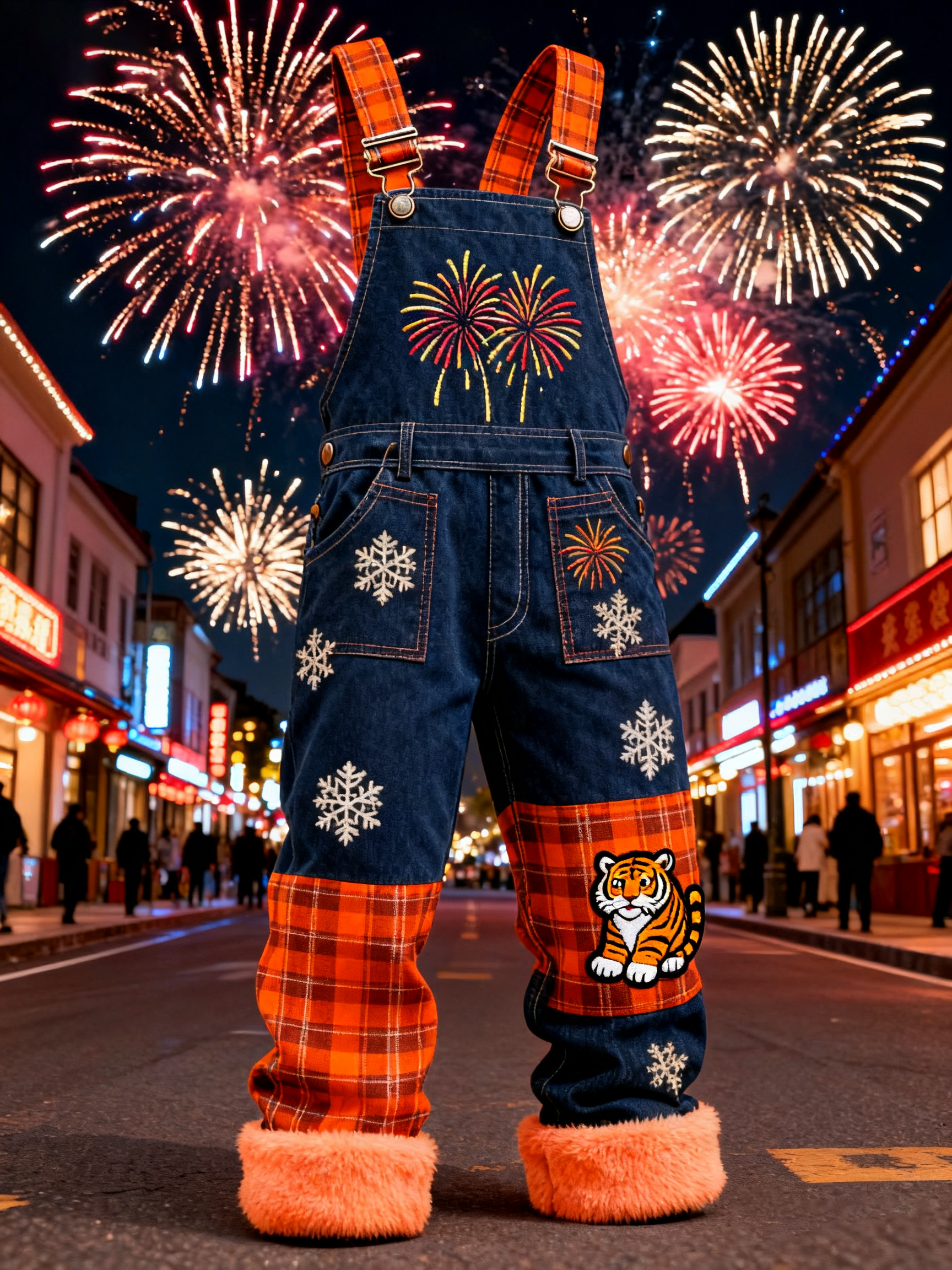 Men'S Christmas Cowboy Party Snowman Embroidery Splicing Jumpsuit