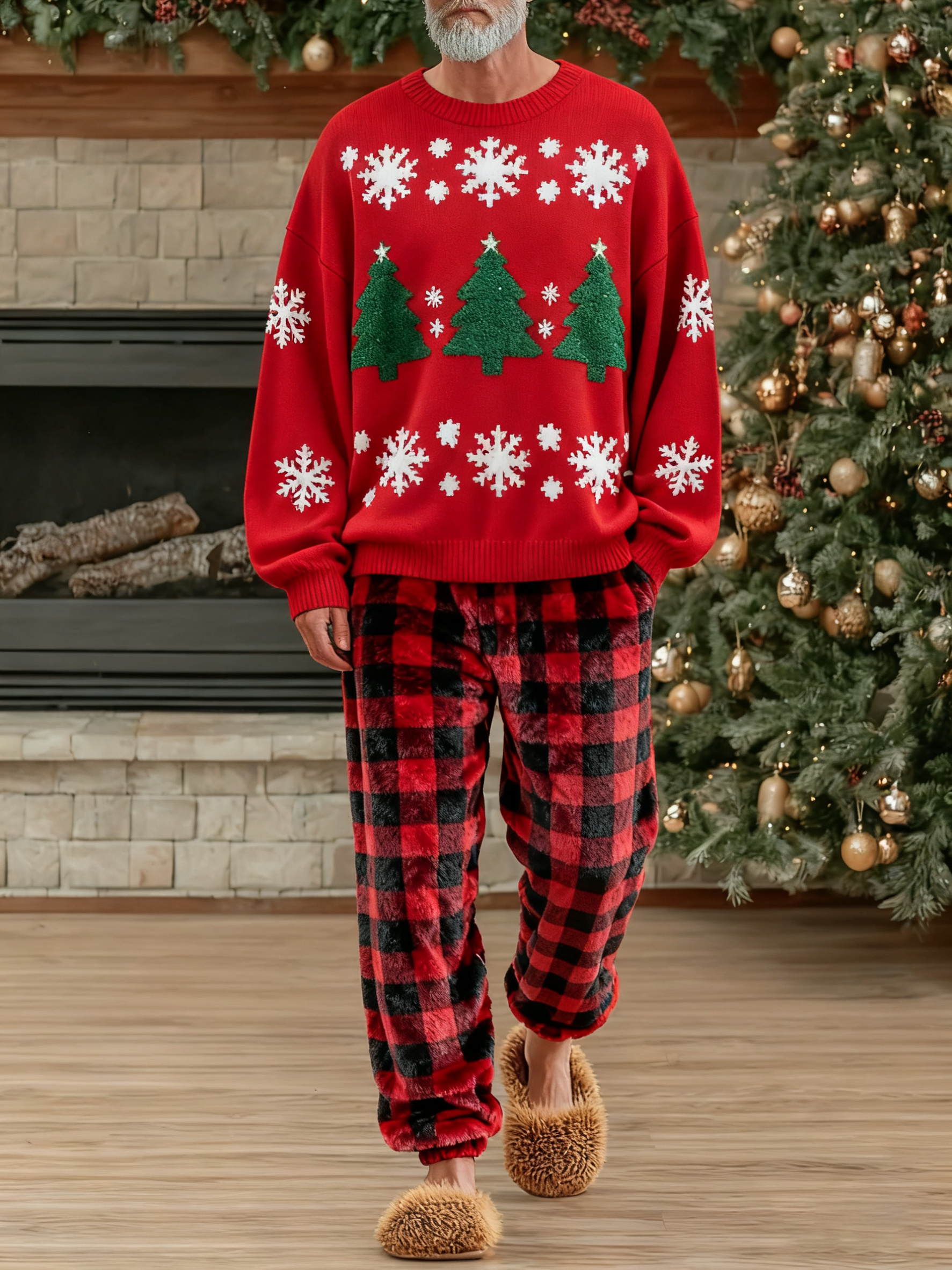 Men'S Christmas Snowflake Tree Pattern Sweater Plaid Pants Set