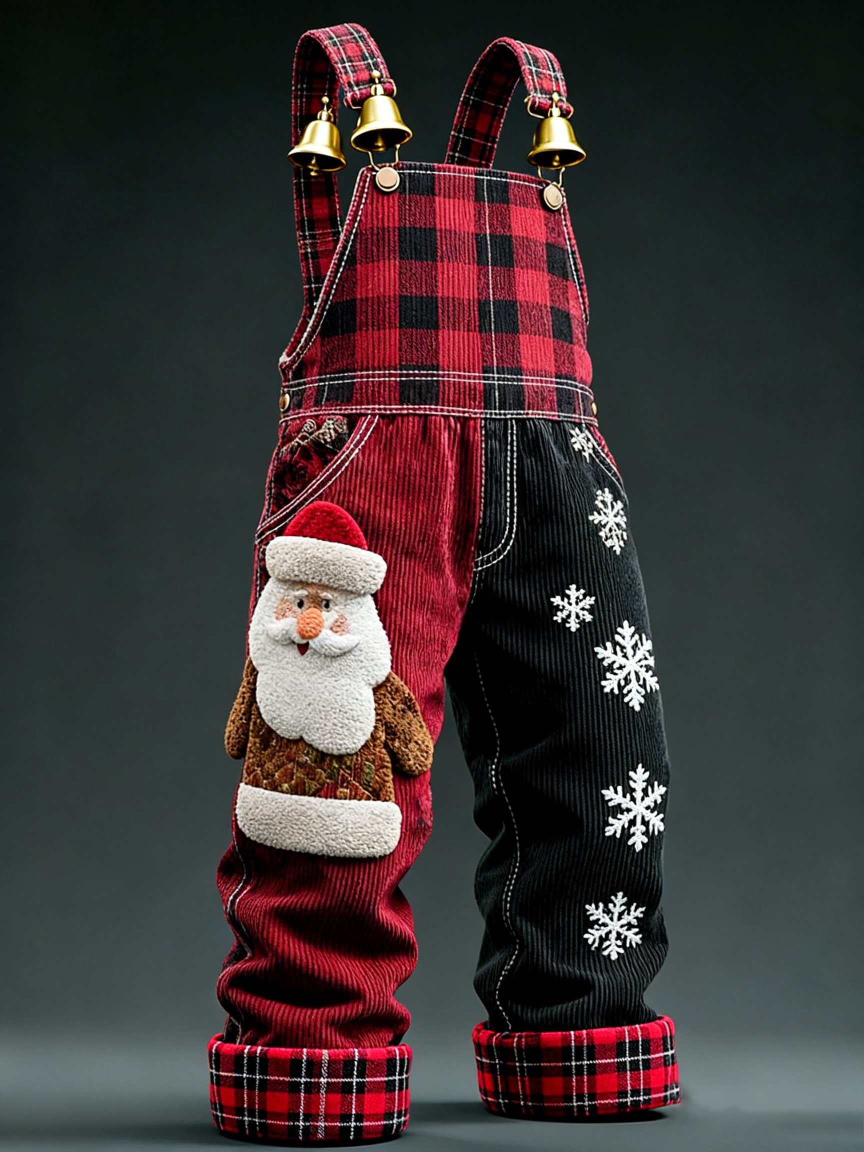 Men'S Christmas Themed Embroidered Checkered Patchwork Christmas Party Warm Work Pants