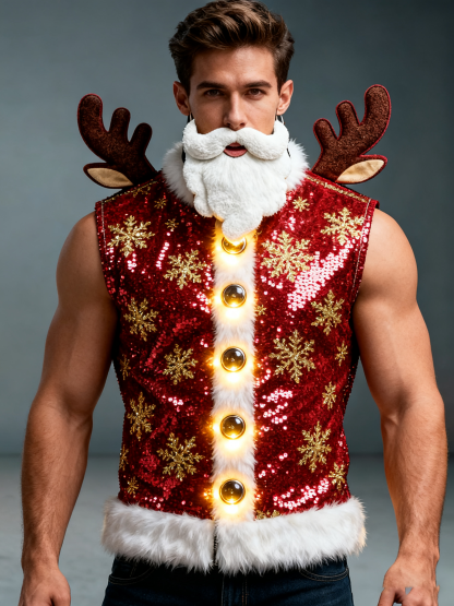 Men'S Christmas Themed Embroidered Christmas Party Vest