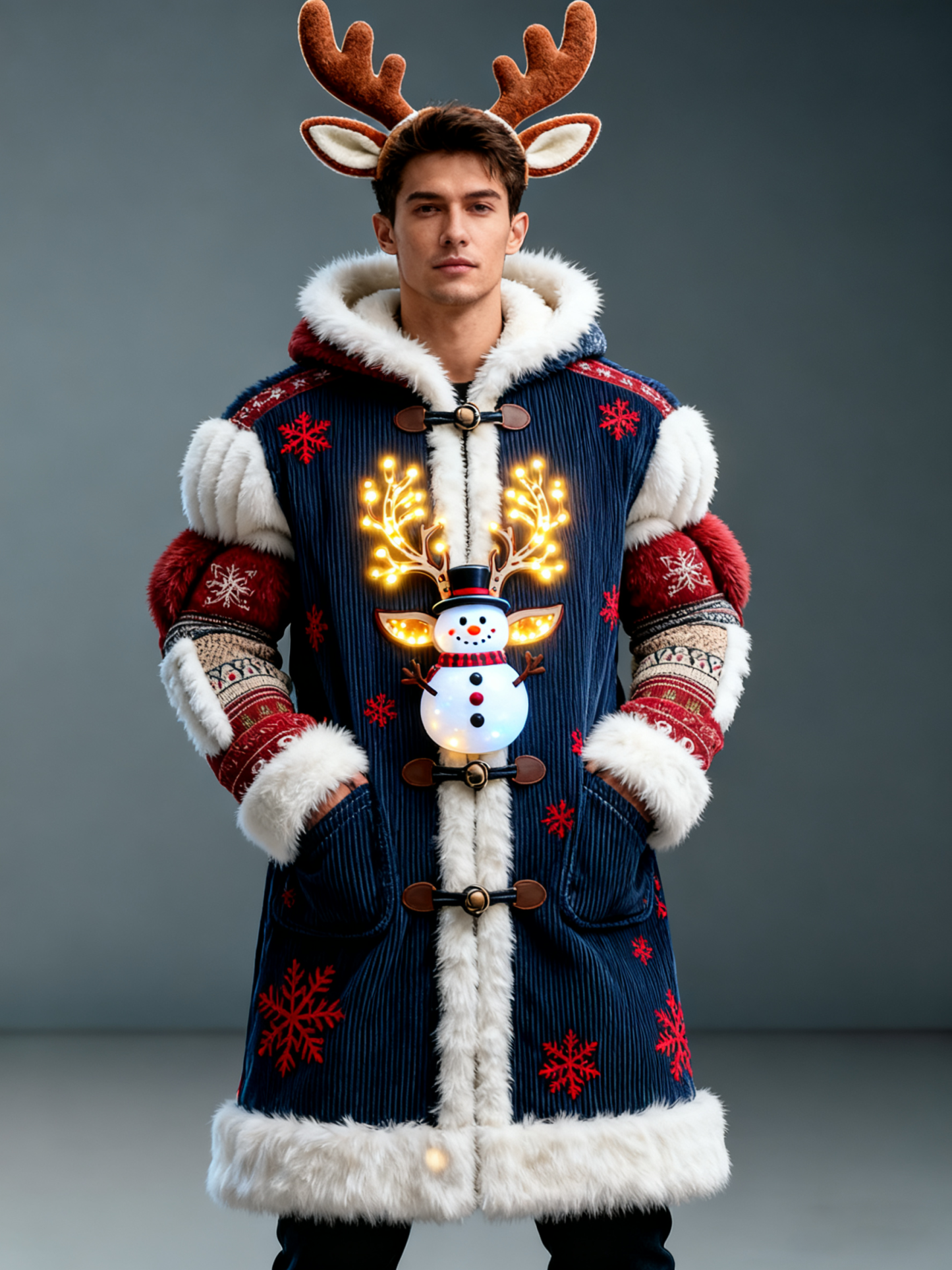 Men'S Christmas Themed Snowflake Deer Cardigan Long Sleeved Warm Woolen Sweater Jacket