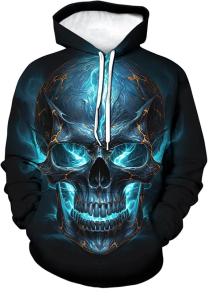 Men'S Cyberpunk Blue Lightning Skull Print Trendy Personalized Creative Loose Hooded Top