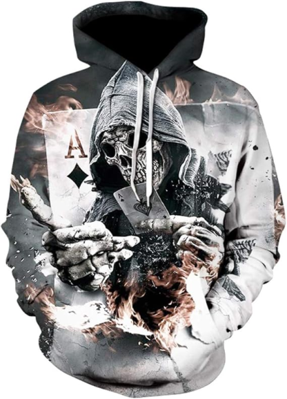 Men'S Dark Poker Skeleton Printed Trendy Personalized Loose Hooded Top