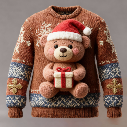 Men'S Fun And Weird 3D Christmas Bear Sweater