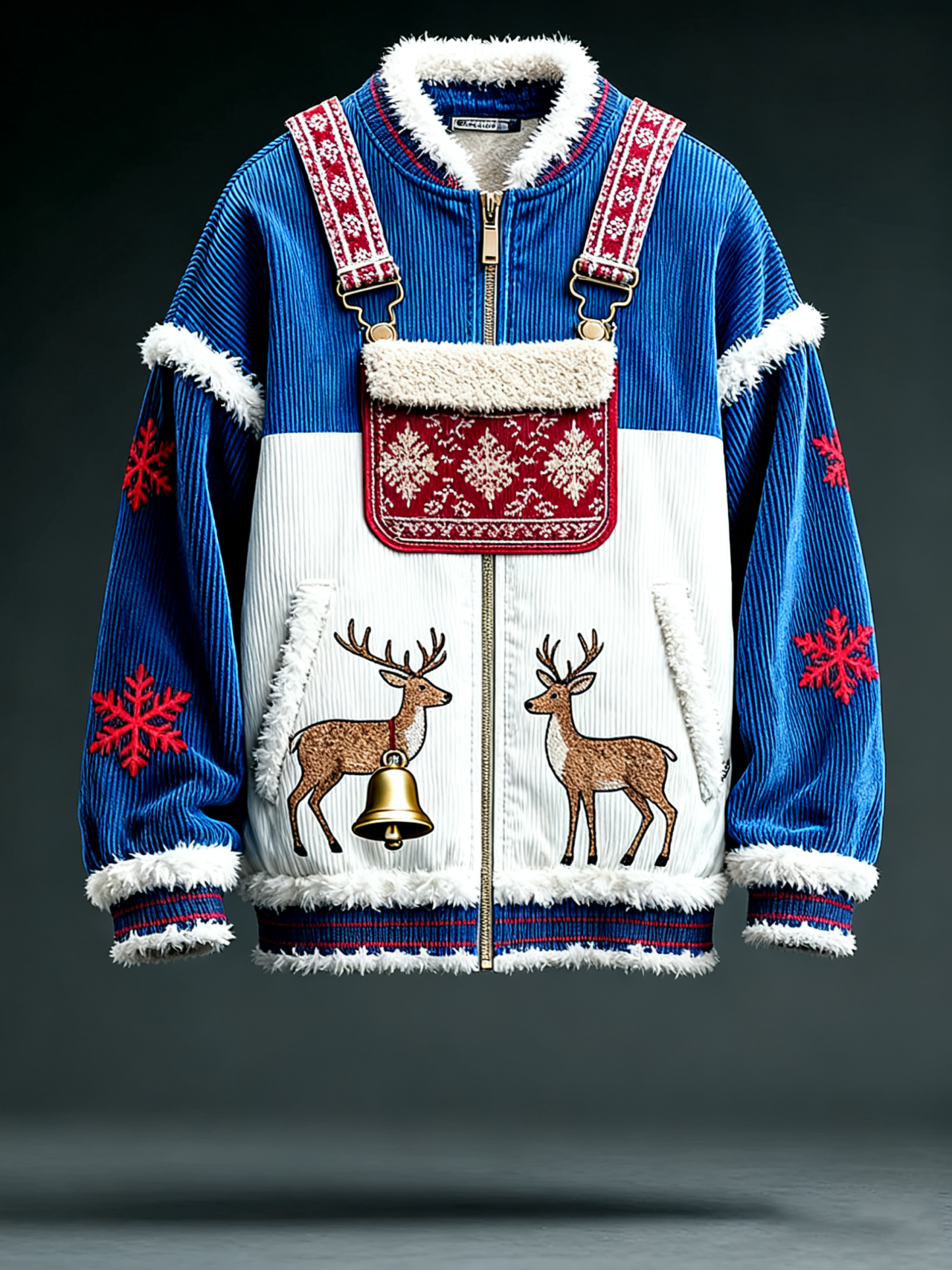 Men'S Fun Christmas Snowflake Deer Theme Splicing Fun Zipper Round Neck Coat
