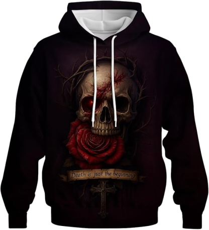 • Our funny Gothic Skull sweatshirts is created using state-of-the-art printing technology. The design is carefully transferred onto the fabric using a high-resolution printing process, ensuring every intricate detail of the artwork is captured with precision. The colors are vibrant and true to life, while the sharpness of the lines enhances the overall visual impact. This advanced printing technique that captivating, even after repeated washes.