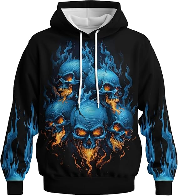 Indulge in the ultimate comfort with our Flame Skulls hoodie, crafted from a blend of high-quality materials. Made with 88% polyester and 12% spandex, no pilling, machine washable, breathable and soft, lightweight and reachable.Polyester material is easier to print that allows graphics printed deeply without ever fading; the fabric is carefully selected to ensure maximum comfort, breathability, and durability.