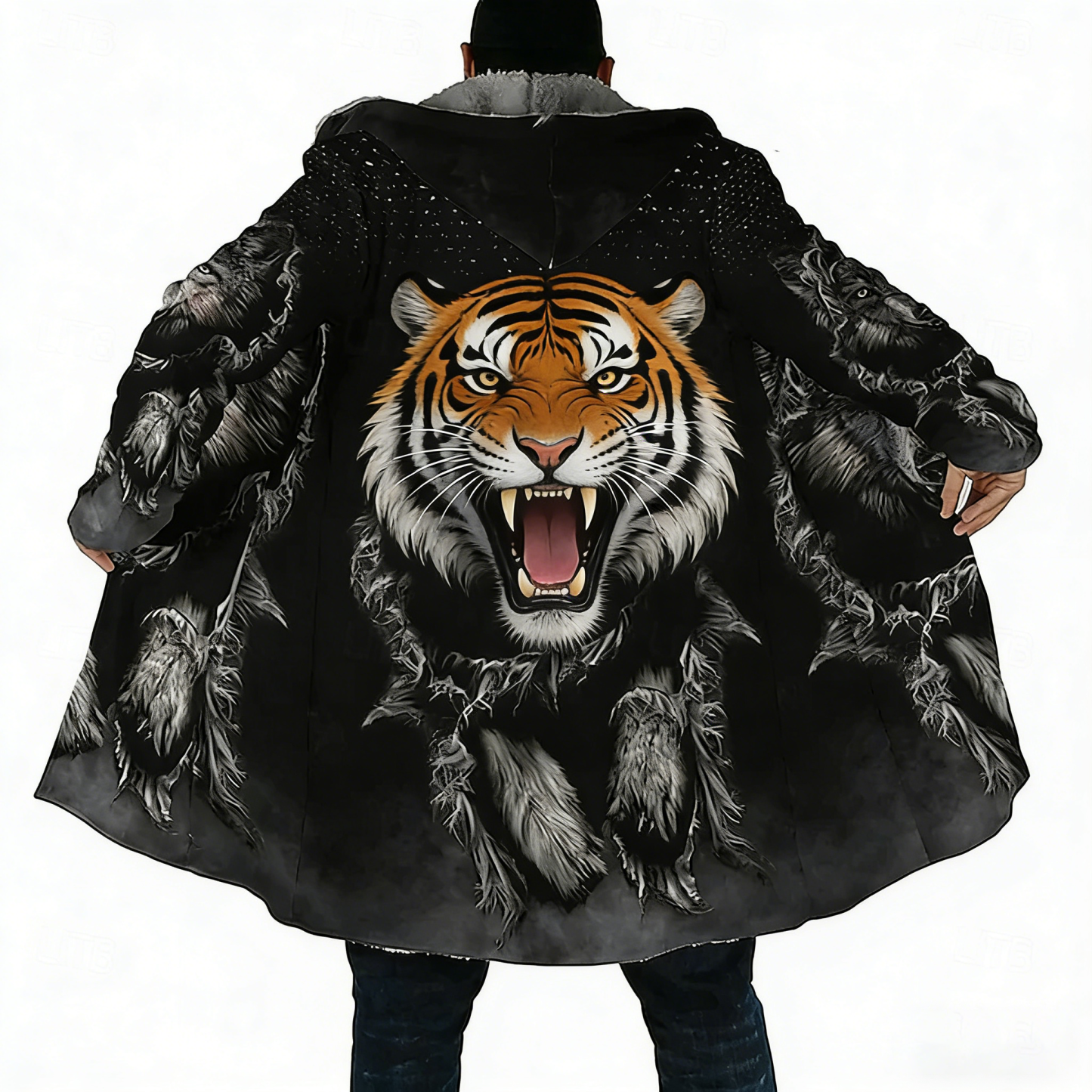 Men'S Howling Forest Tiger Tribe Totem Hooded Cloak Casual Jacket