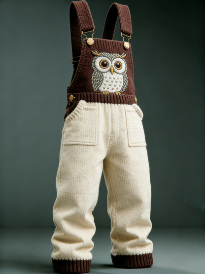Men'S Owl Embroidered Knitted Material Classic Design Comfortable And Warm Brown Beige Color Blocked Overalls