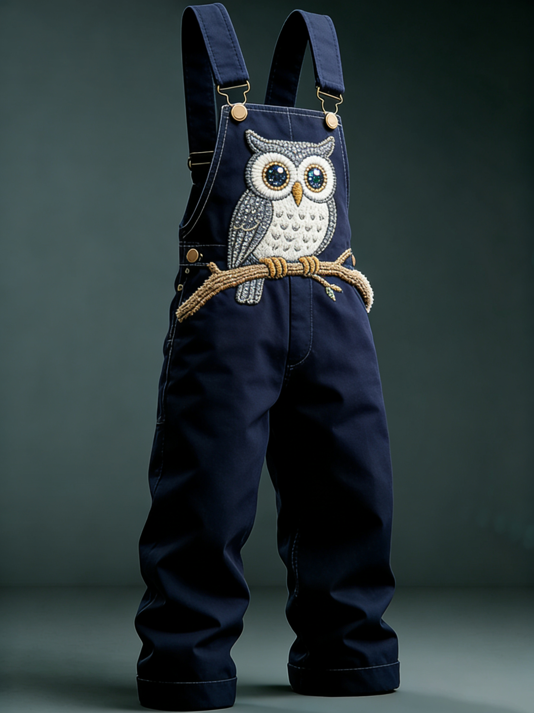 Men'S Owl Embroidered Tree Branch Belt Cute Design Deep Blue Strap Pants
