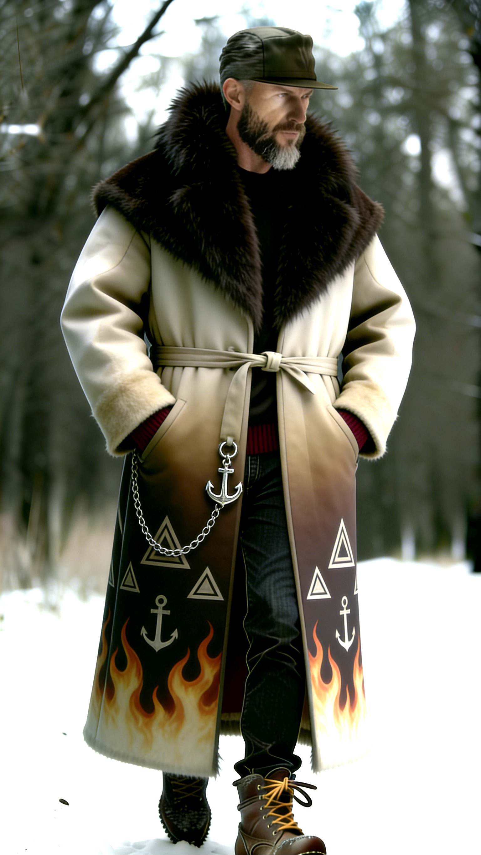 Men'S Sailing Style Triangle Boat Anchor Flame Totem Fur Coat