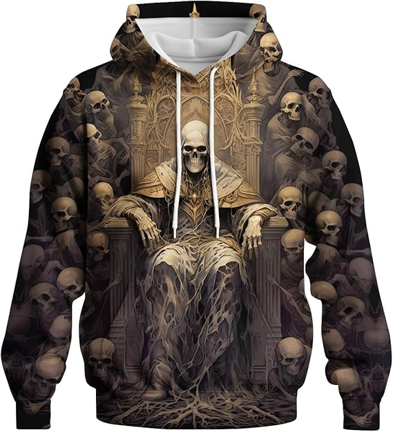 Men'S Skeleton King Sitting On Throne Printed Hoodie