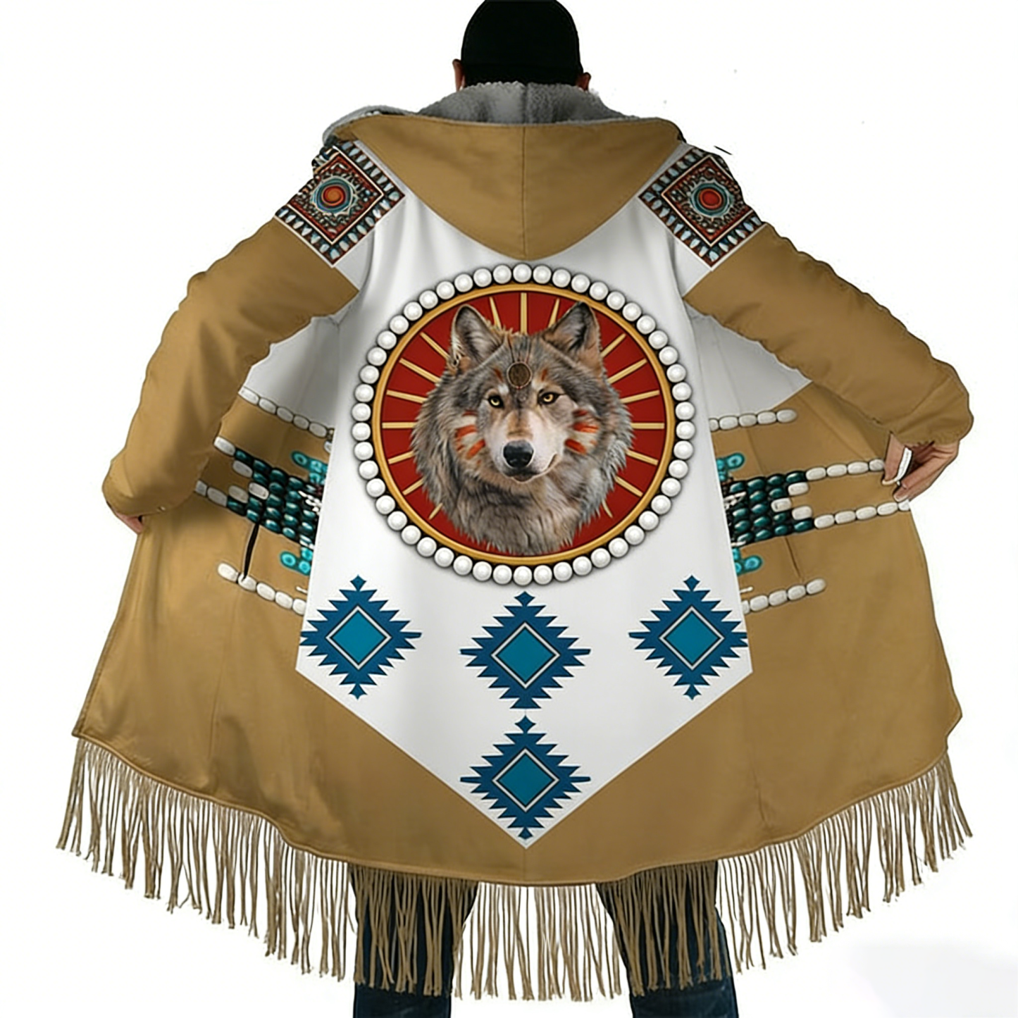 Men'S Western Style Totem Lone Wolf Tribe Totem Hooded Cloak Casual Coat