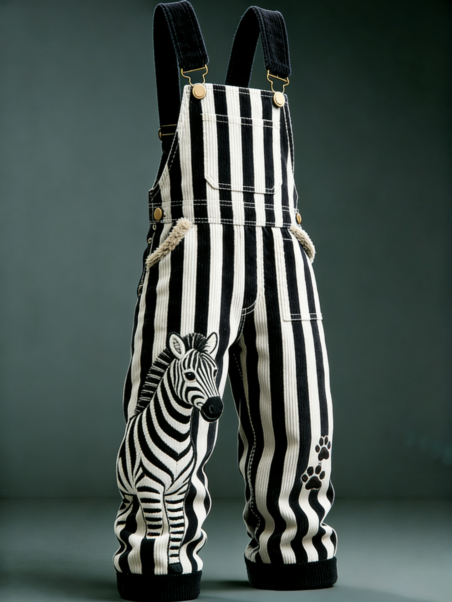 Men'S Zebra Embroidery Paw Print Decoration Classic Striped Design Black And White Striped Overalls