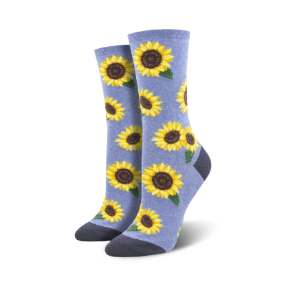 More Blooming crew socks for women are bright, bold, and bursting with good vibes. Inspired by summer's favorite flower, these sunflower socks feature vibrant yellow and brown blooms with green leaves and a green toe and heel. They're the perfect socks to add a pop of color to any outfit, whether you're wearing them to a festival, a picnic, or just a day at the beach. And did you know that sunflowers are a symbol of happiness, positivity, and longevity? So why not put on a pair of More Blooming socks today and let your feet do the talking?