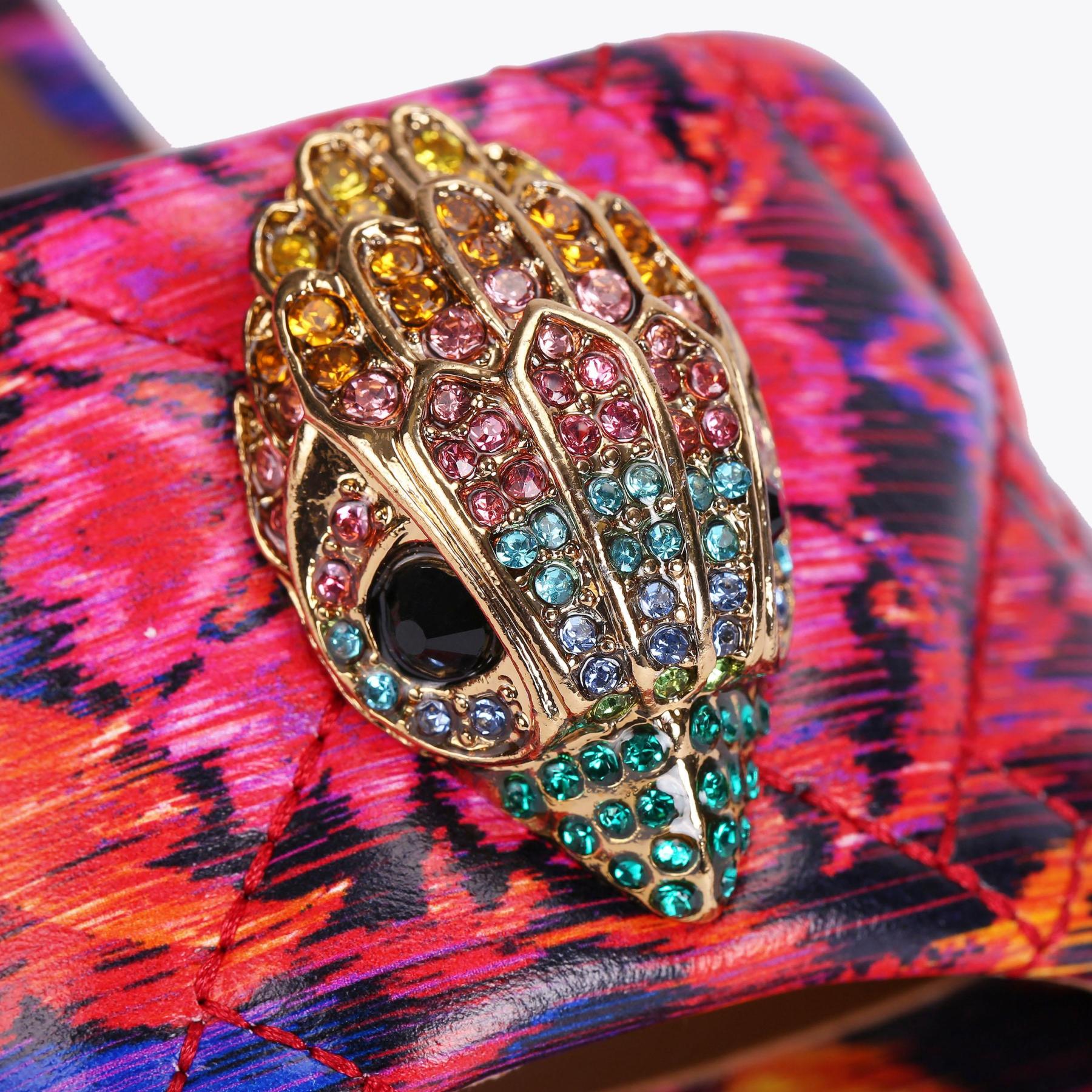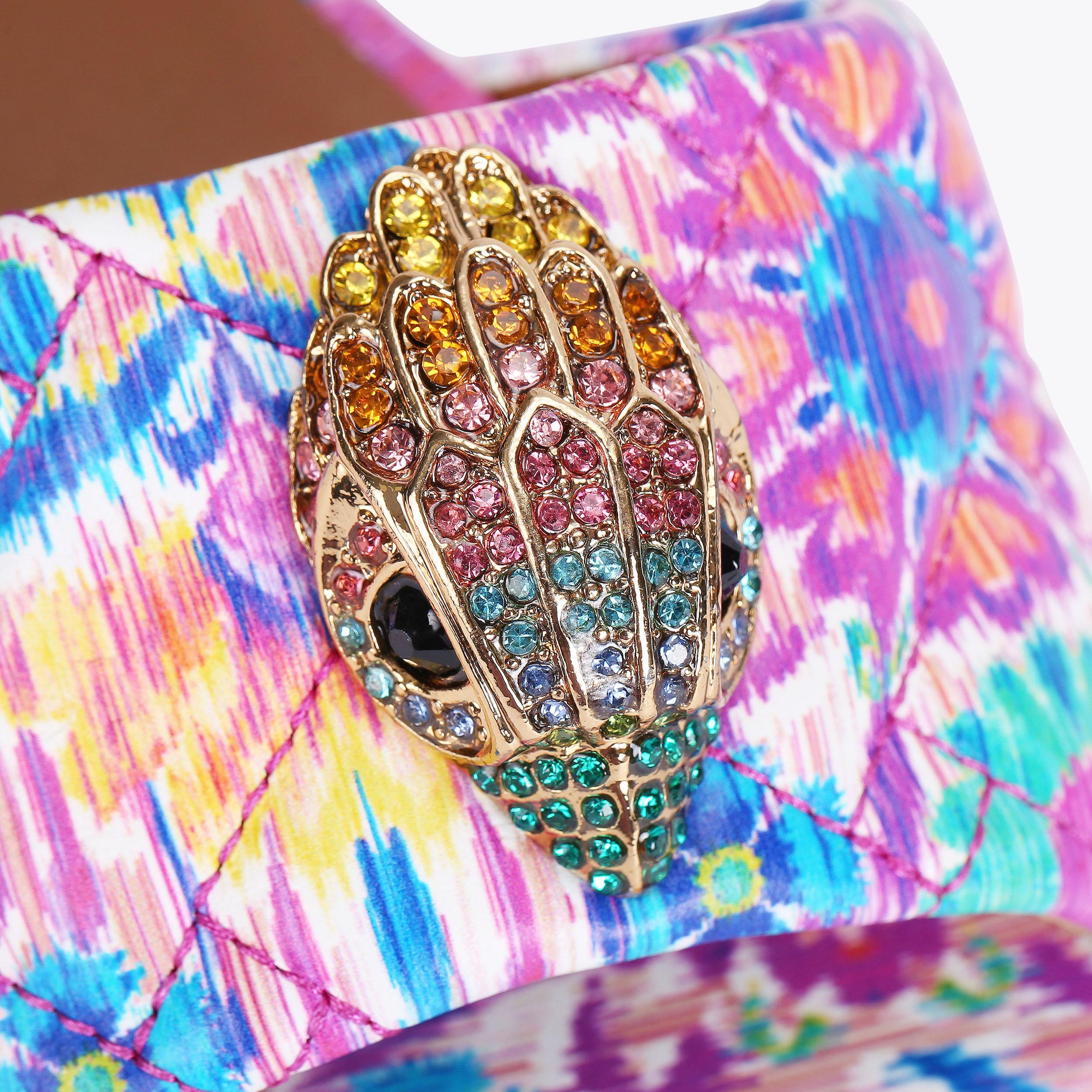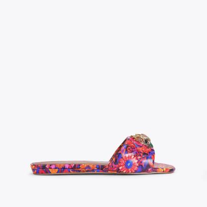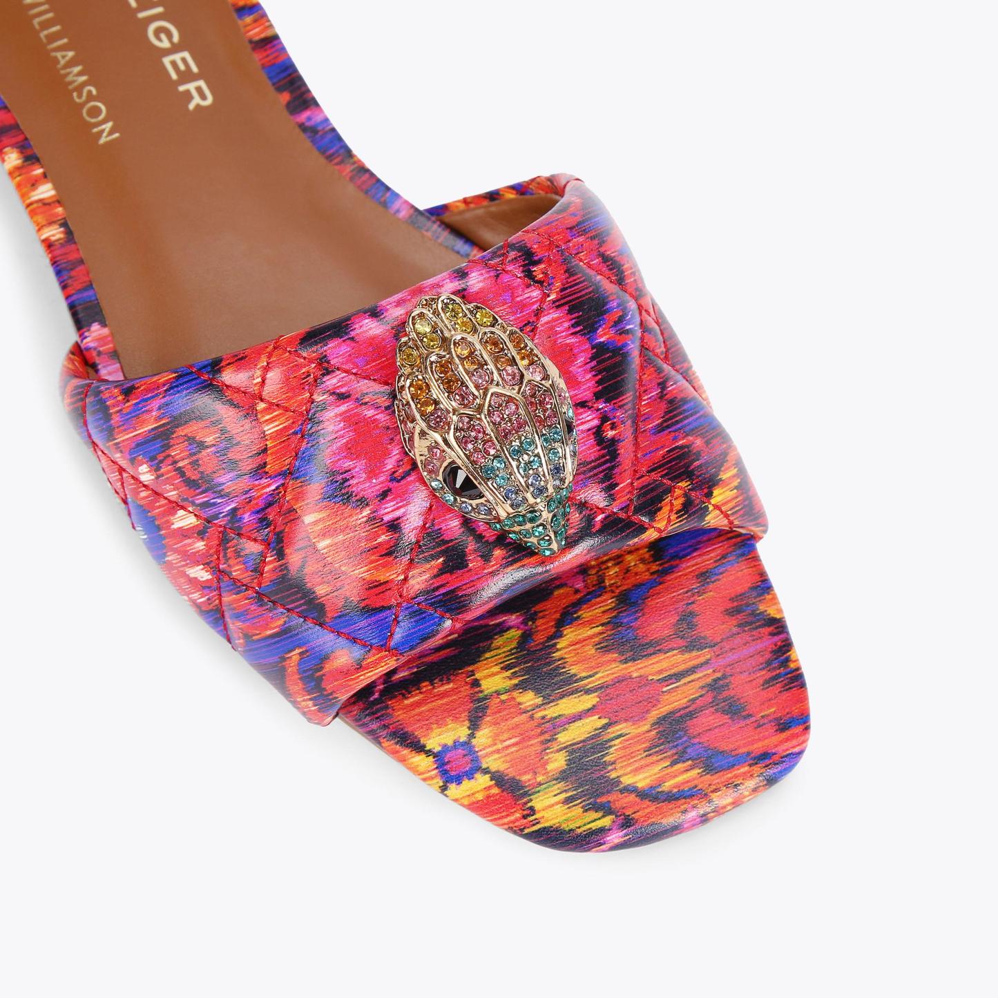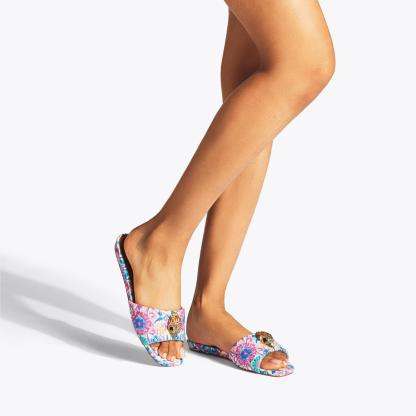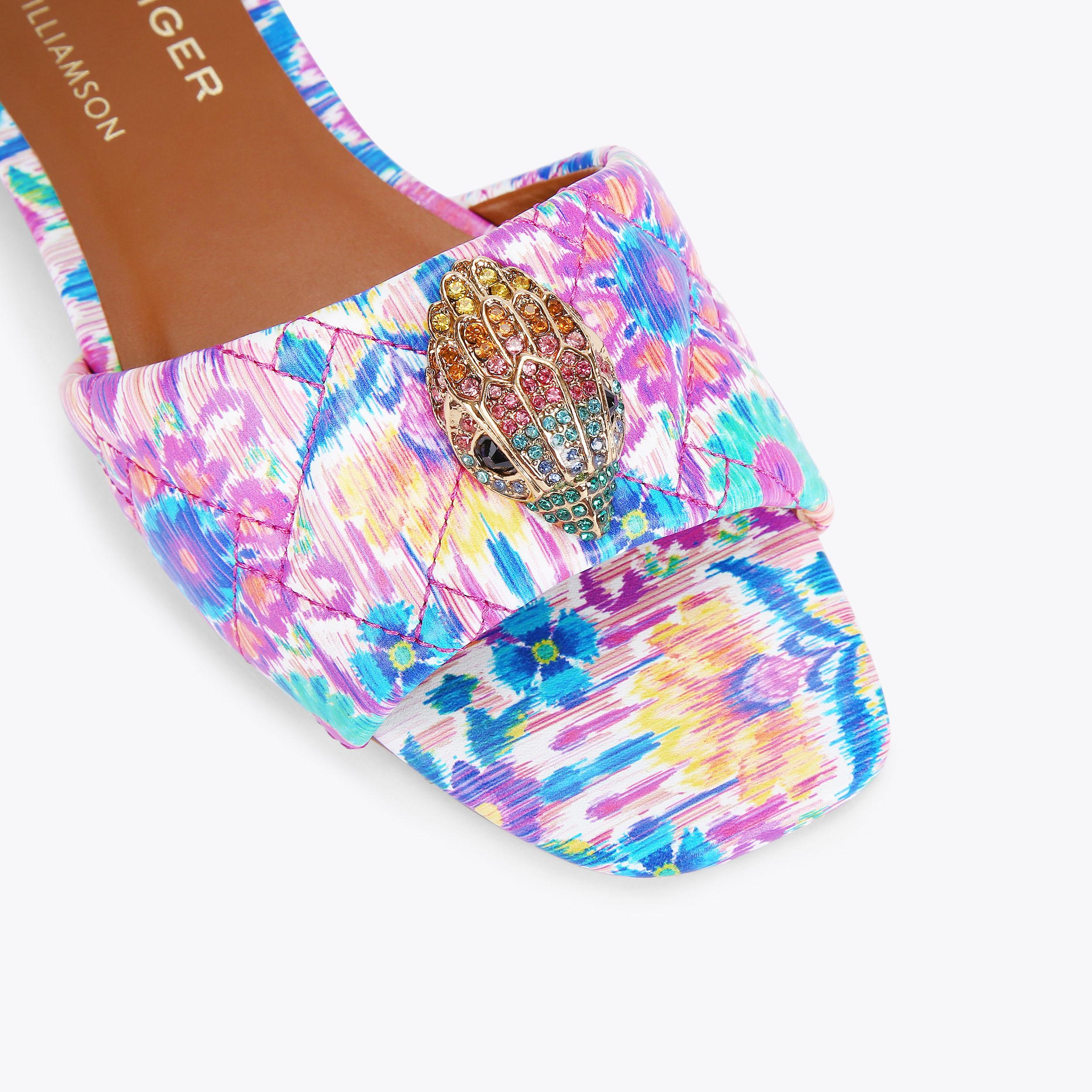 The Kensington Flat Sandal features a bespoke print created by iconic British fashion designer, Matthew Williamson. The floral motif is complemented with an abstract ikat design to create a beautiful bohemian print across the quilted upper. The go