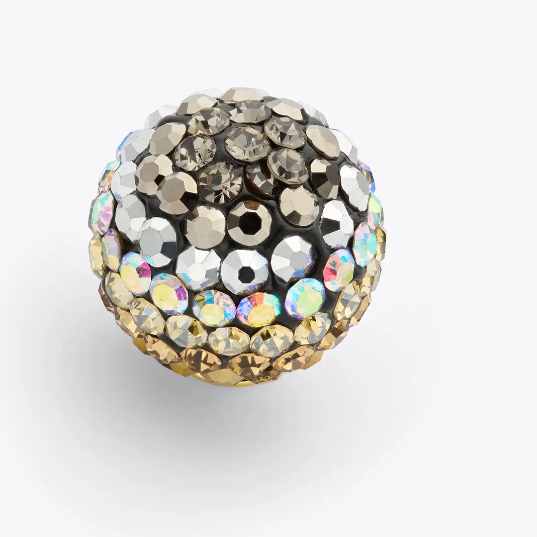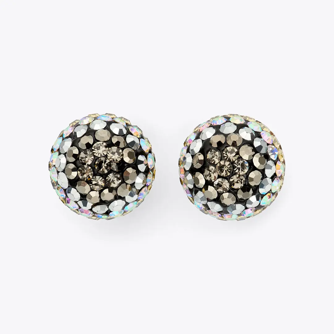 This pair of Pave Bubble Stud earrings are stud earrings embellished with neutral crystals. There is an antiqued brass eagle head as the backing.