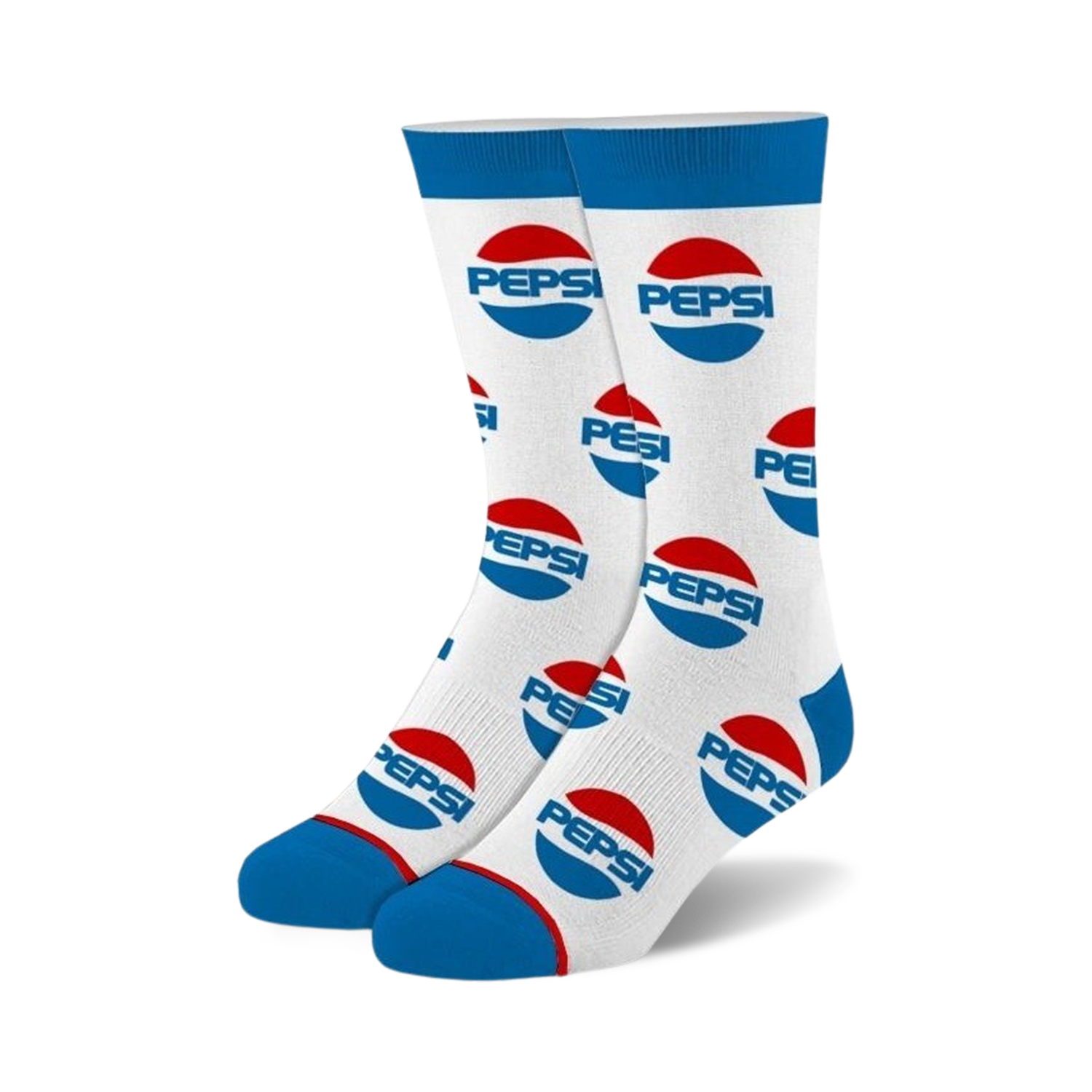 Pepsi All Over crew socks: The coolest way to show your appreciation for that delightful brown bubbly sugar water. If crisp and refreshing blue, white and red are your thing, then these Pepsi logo patterned, unisex crew socks are perfect for you! Wear these and get thirsty for the softest, coolest, and most comfortable Pepsi you'll ever experience. The soda not included.