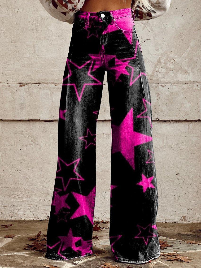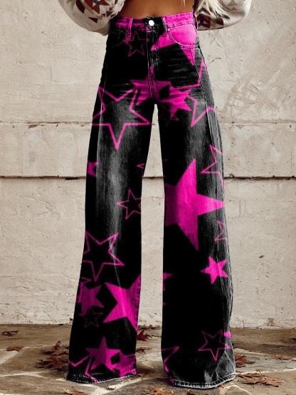 Pink Star Print Women's Print Casual Wide Leg Pants