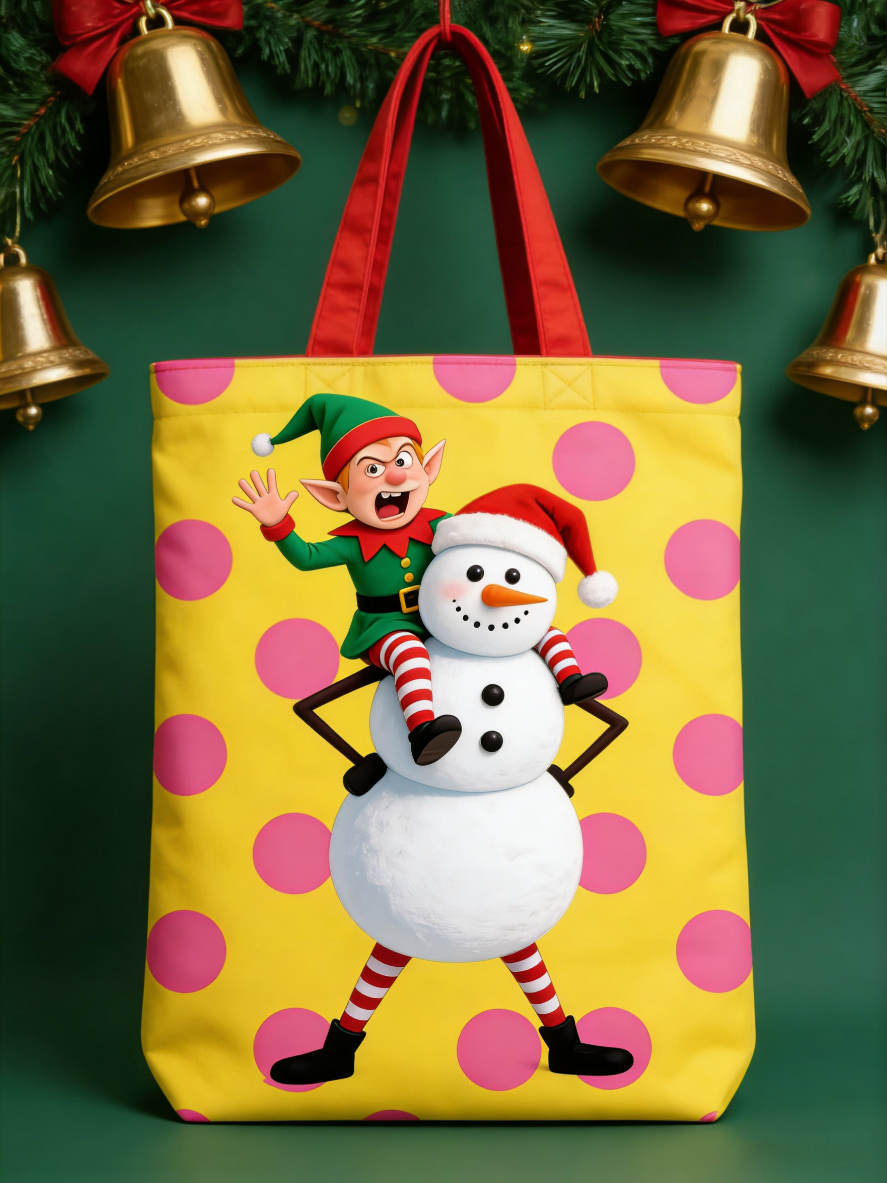 Playful Snowman Tote Canvas Single Shoulder Large Capacity Handbag
